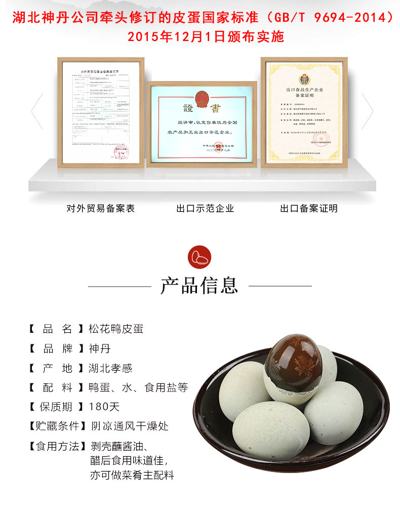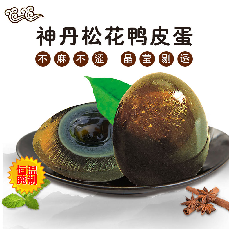 神丹是中国健康蛋品牌!无铅工艺皮蛋松花蛋,美容养颜,清火健脾,夏季必备,各大超市有售,精心取材,无铅工艺,松花明显,晶莹剔透,看着都流口水了!速度抢!