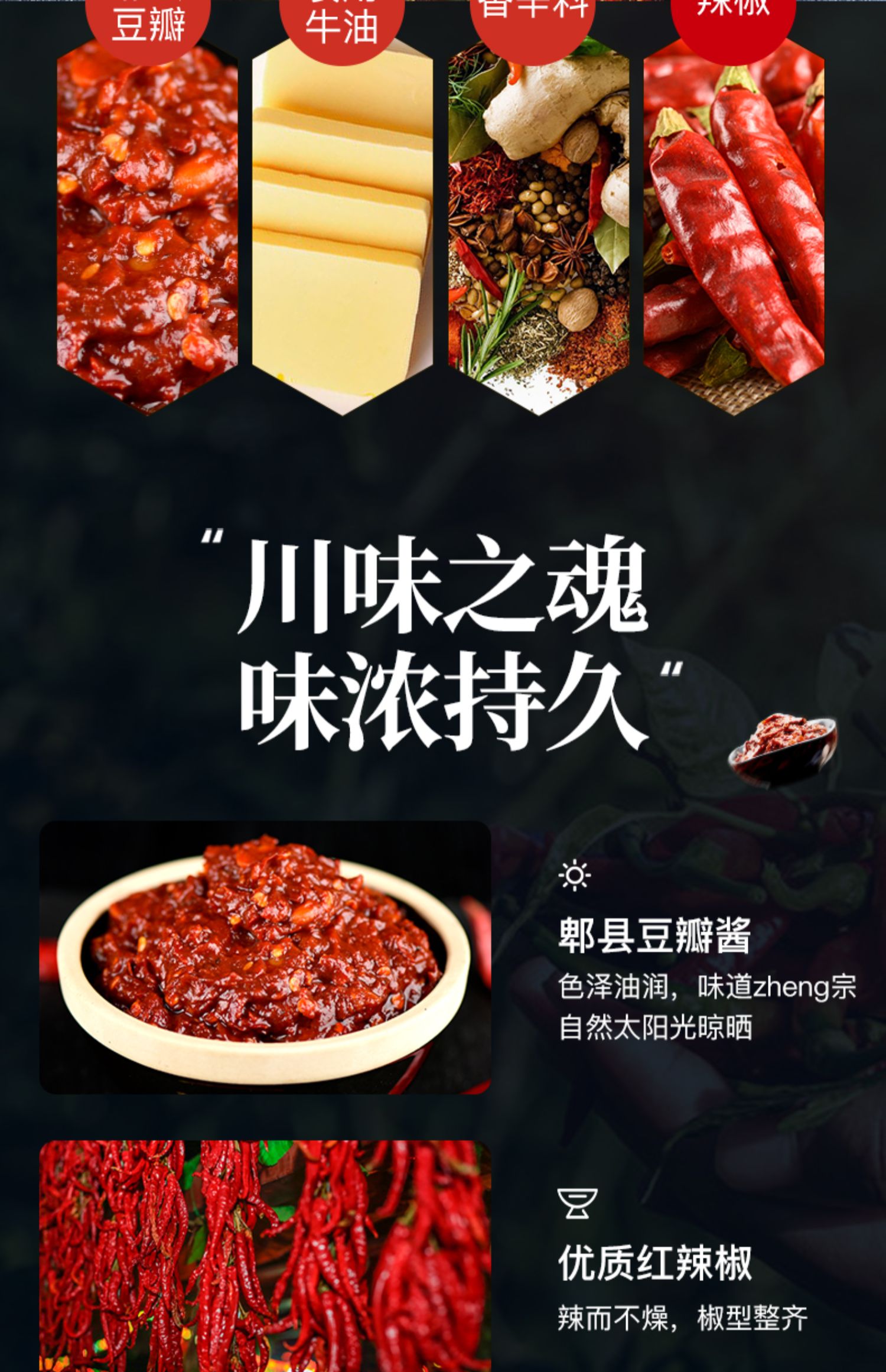 大师调味,匠心研制,充分释放爆爽滋味,一料多用,解锁多种地道川味,麻辣烫,香锅,火锅都适用,家中必备!