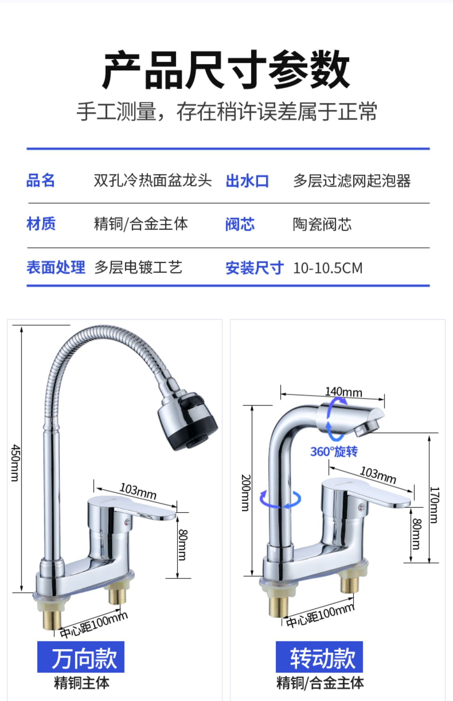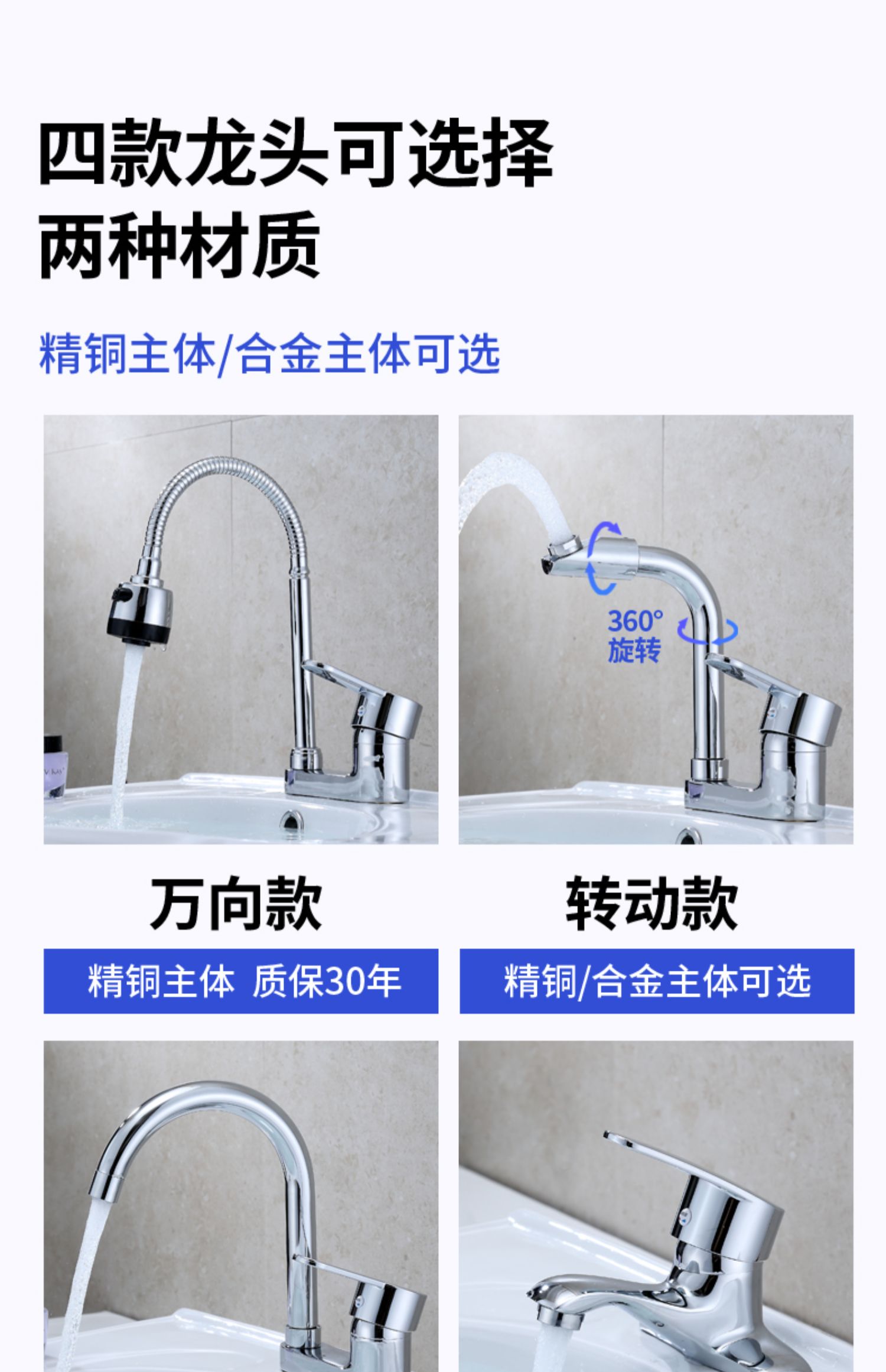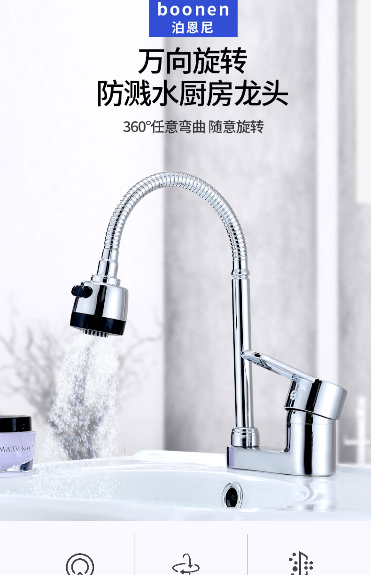【血亏冲量】【送全套配件】【泊恩尼】精铜铸造,多层电镀,防刮耐磨,360°旋转,出水流畅,适用双孔三孔面盆,安装简单方便~【顺丰包邮】【质保30年】