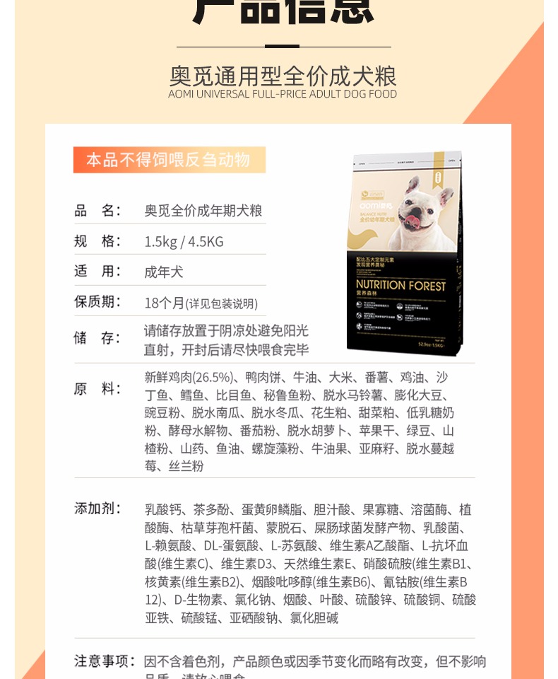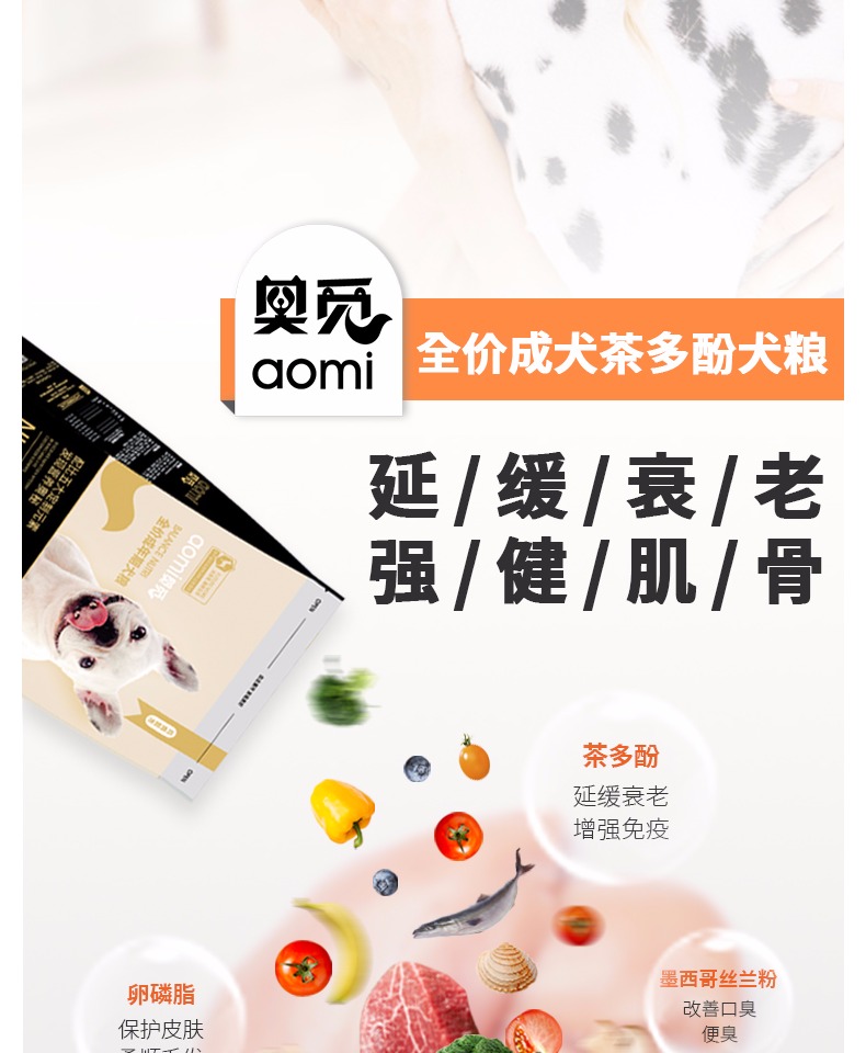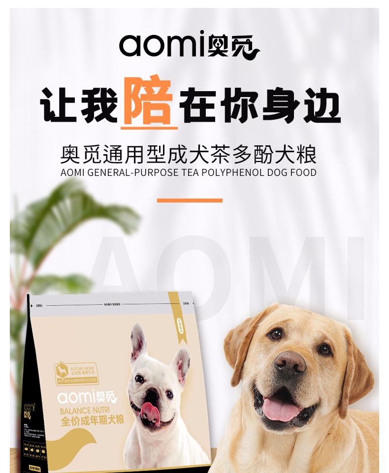 奥觅通用型茶多酚成犬粮,科学营养配方,茶多酚延缓衰老增强免疫,乳酸钙乳酸锌强健肌骨,胆汁酸促进肠道消化,卵磷脂保护皮肤柔顺毛发,墨西哥四兰粉改善口臭便臭,无盐配方淡化泪痕【赠运费险】