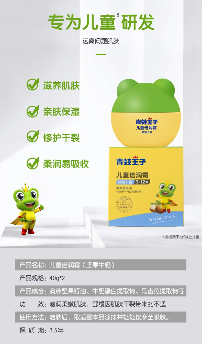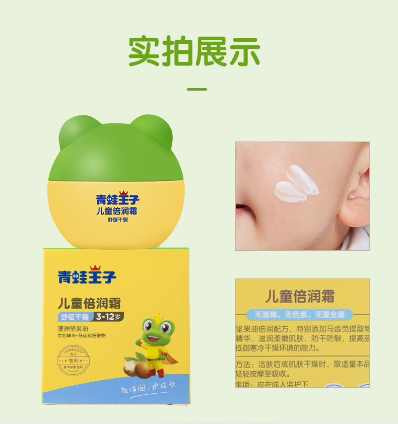 【包邮!一件7折,到手18.43元2瓶装】青蛙王子儿童面霜40g*2瓶,专业儿童护理24年,天然配方植物萃取,无添加剂,滋润肌肤,四季常备,温和营养,防干防裂,呵护宝宝娇嫩肌!!!