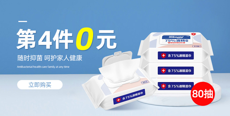 【现货速发,第4件0元】4包*80抽大规格,含百分之75酒精湿巾,能够有效杀灭病毒!日常外出暴露接触的地方,可以用它擦拭消毒更放心,防疫期间,随身装一个或者为孩子上学准备很有必要!