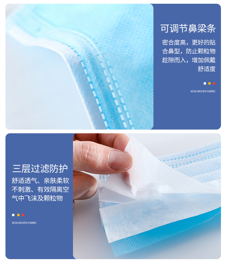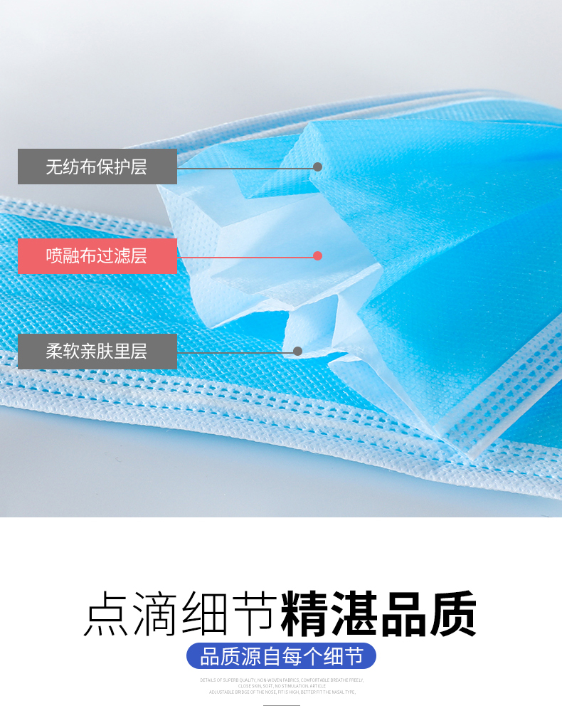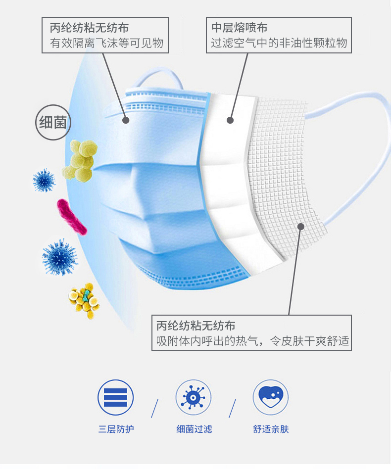 一次性医用口罩每一只都符合标准,保护呼吸,匠心之作,呵护家人健康,三层防护,舒适亲肤,有效过滤,正规生产!!