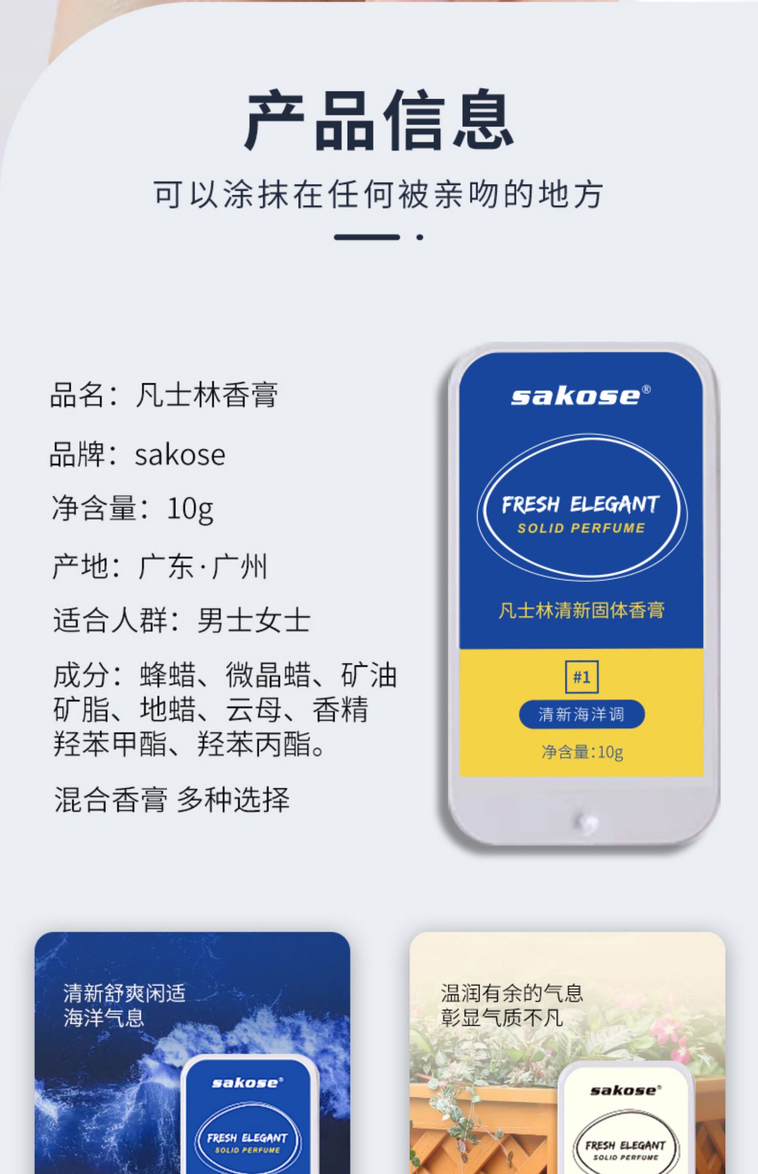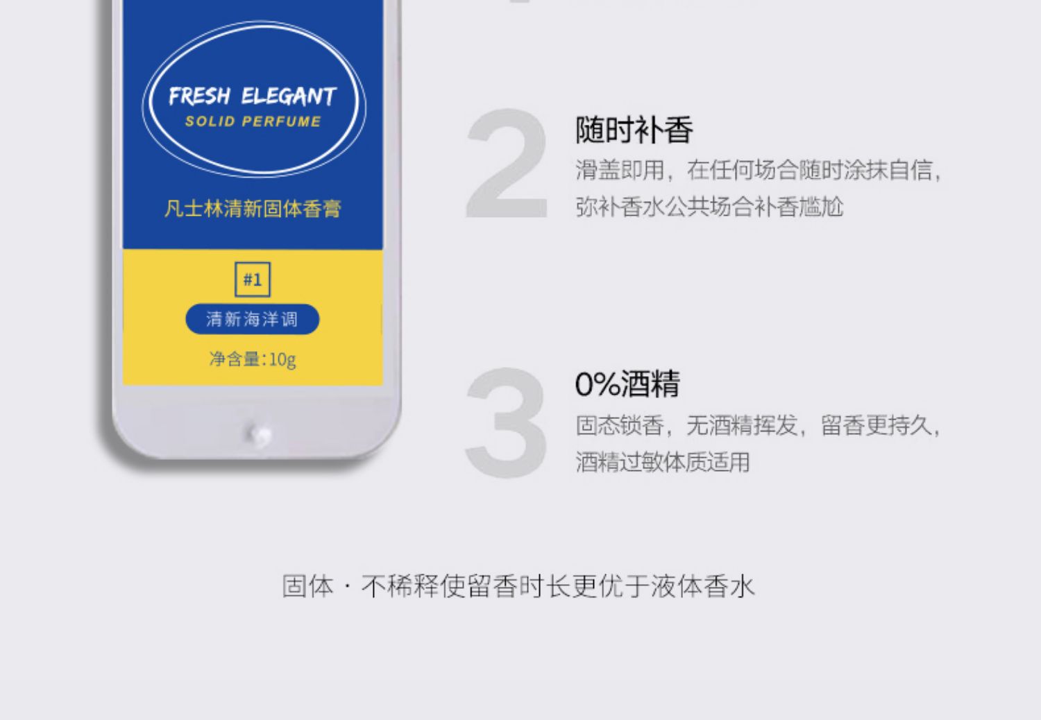 多种香味选择,男女士固体香水,小巧便携,0酒精0色素,温和清新,随时随地,轻松一抹,持久留香!脱单神器,助你提升格调魅力!