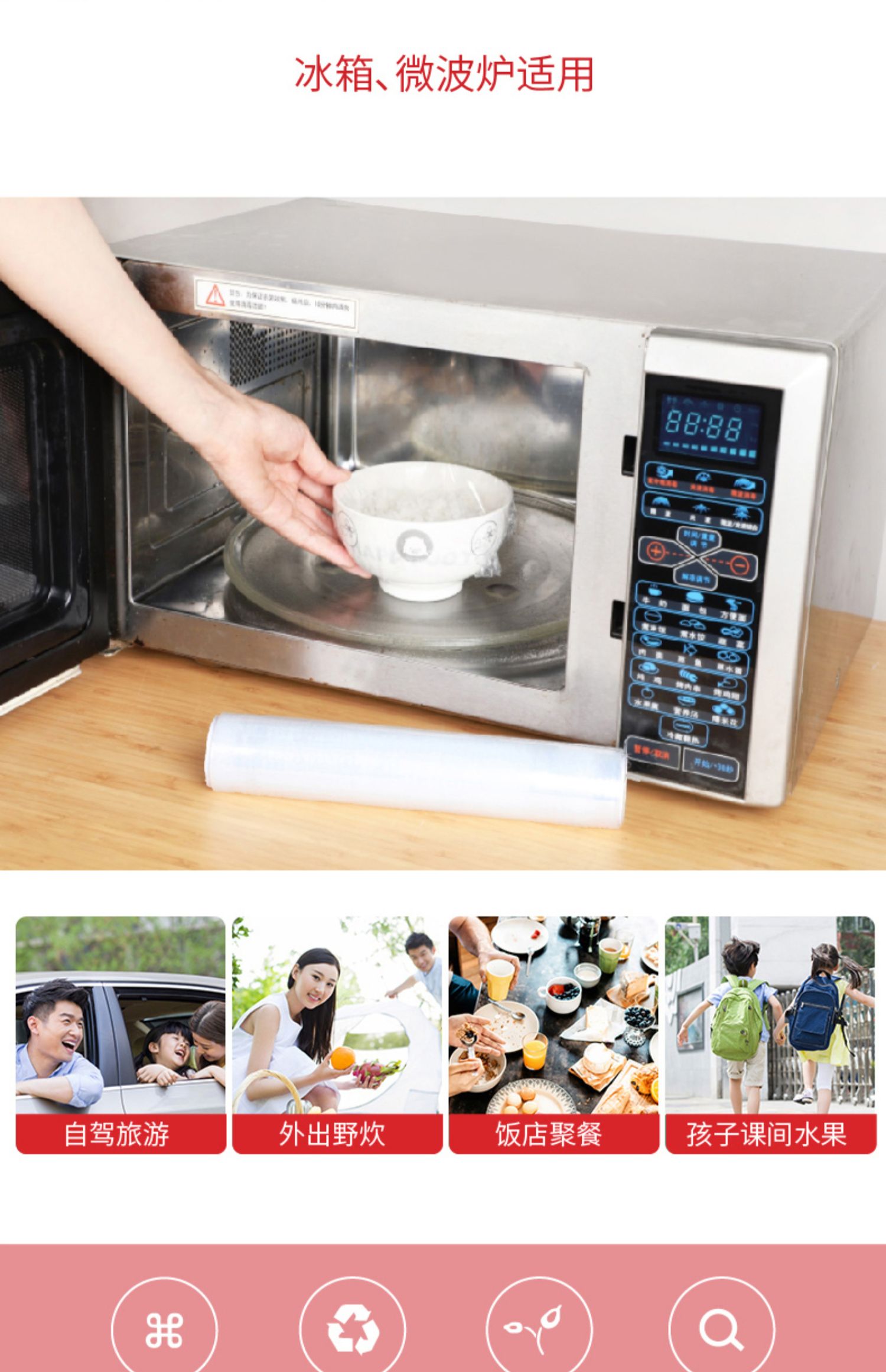 宜洁经济大卷装保鲜膜!环保PE原料,坚韧耐用,粘性高密封性好,锁水保鲜,韧性强,耐冷耐热,冰箱微波炉都可以使用!【赠运费险】