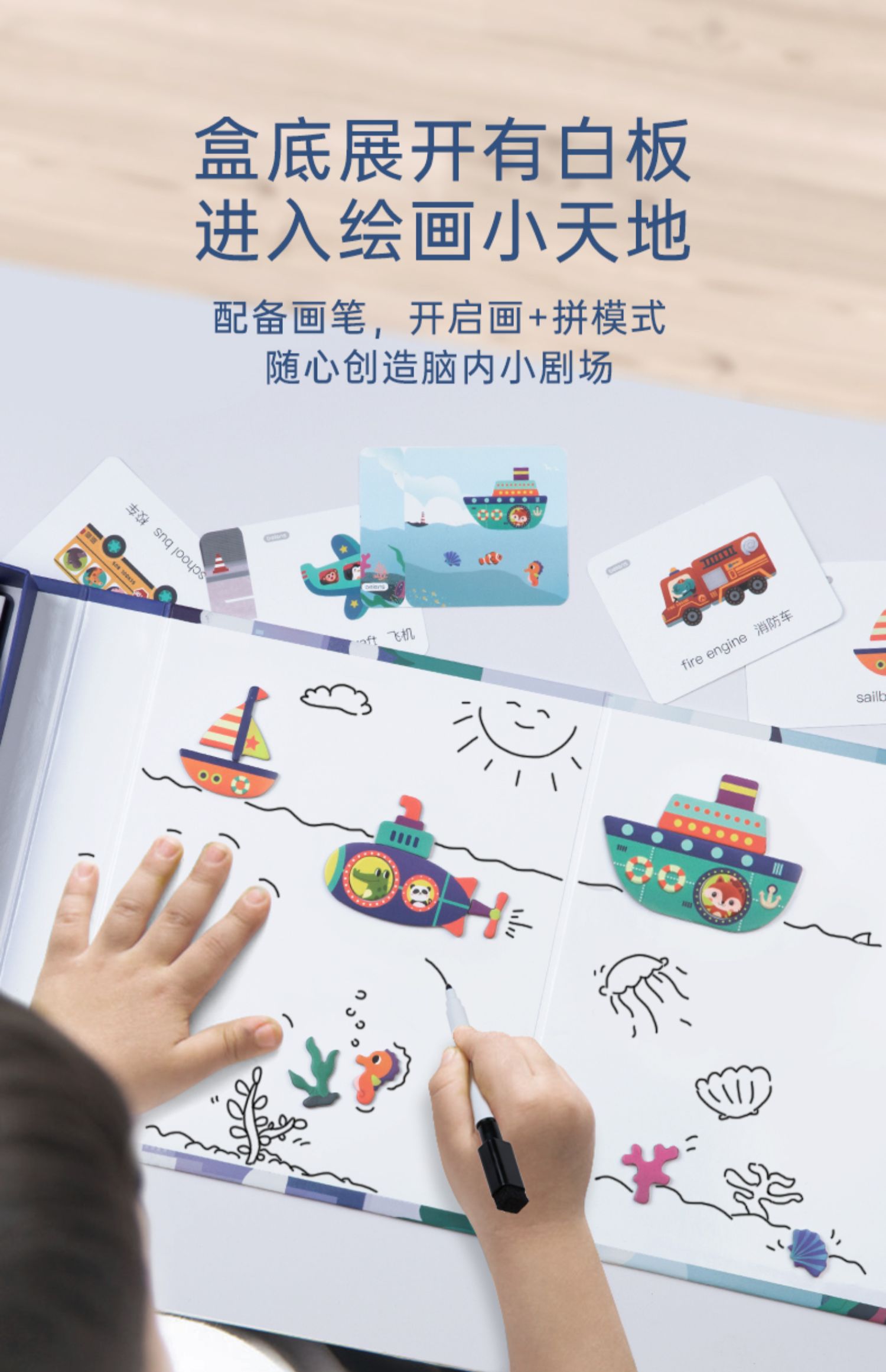 【旗舰店】贝恩施儿童磁性拼图益智玩具宝宝早教幼儿益智力启蒙男女孩3-6岁,配备画板,花式涂鸦,一体盒型,方便收纳【赠运费险】