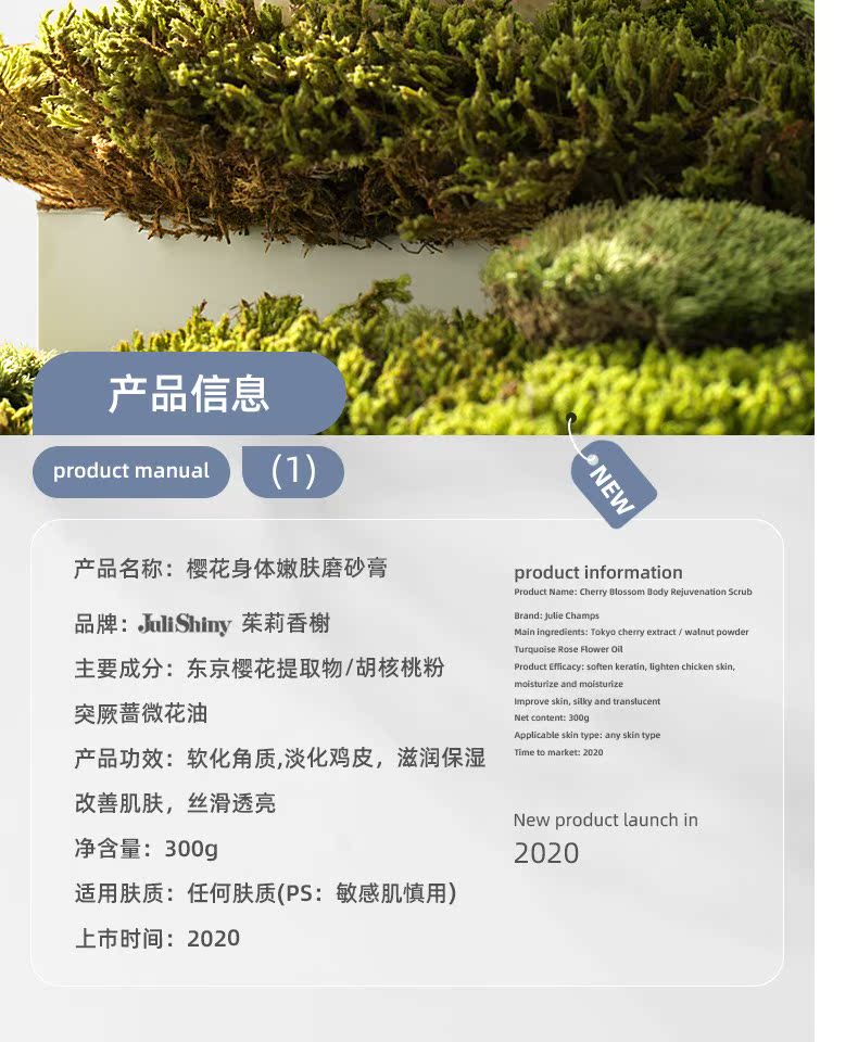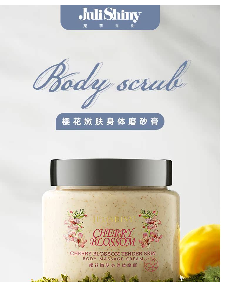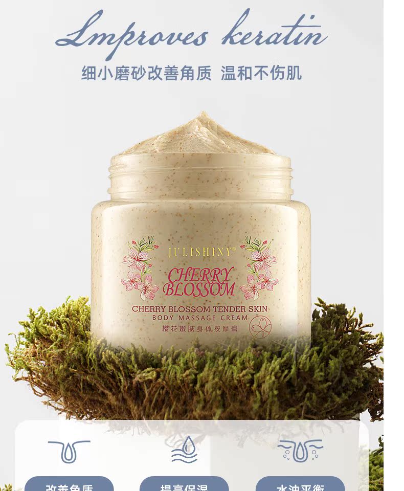 【超值300ml】JULISHINY高光女神冰淇淋磨砂膏,樱花自然香氛法式SPA,细腻柔滑乳霜质地,温和去角质,和暗沉鸡皮肤说bye!!敏感肌也可以用!