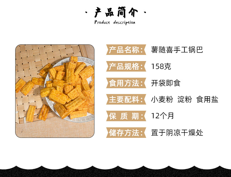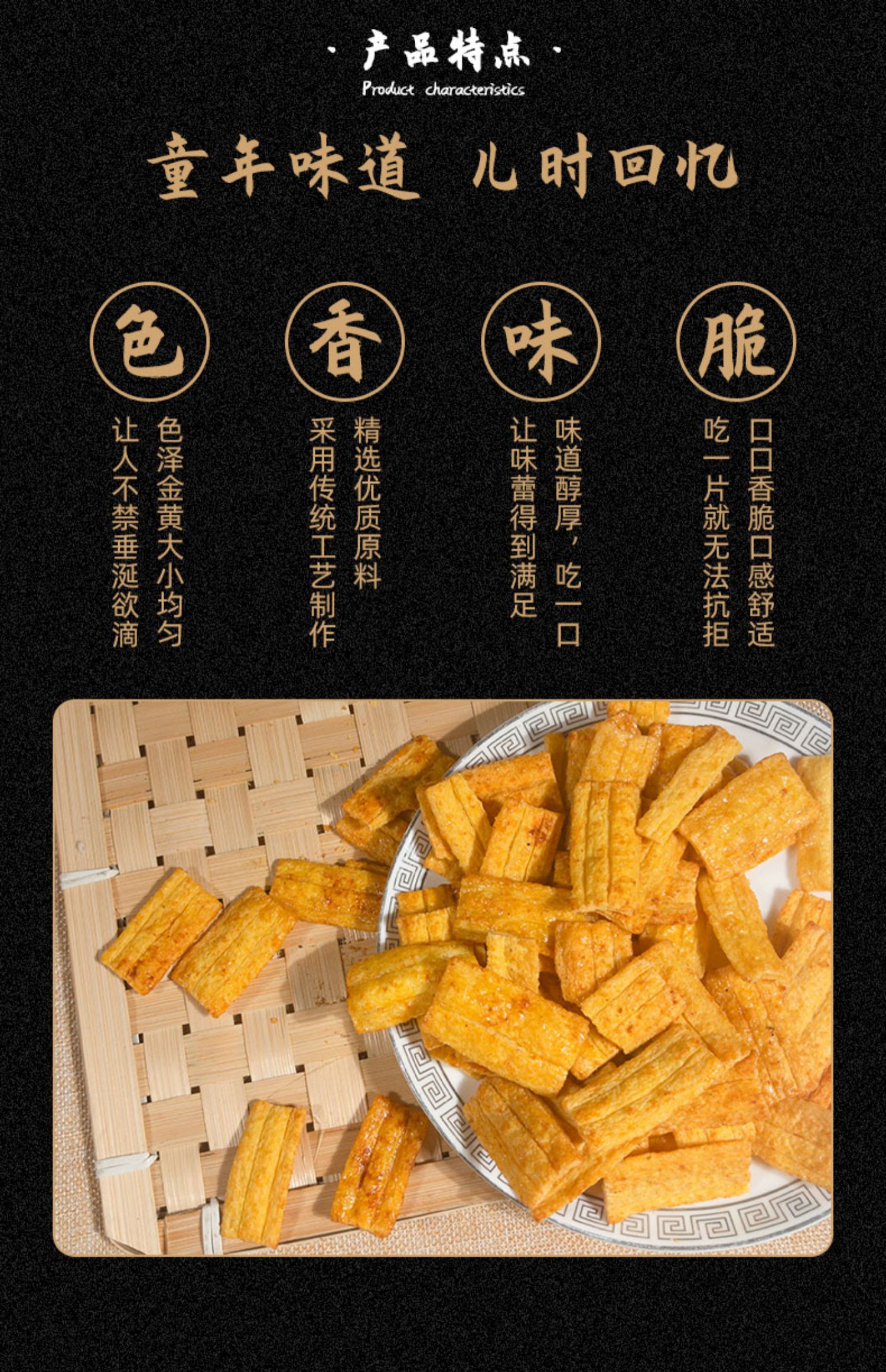 统手工锅巴味才会更好吃,脆香脆香的,金黄颜色,清脆可口,口感十足,咔、咔、咔、让你一吃就脆上瘾的味道,忘不住的美味~