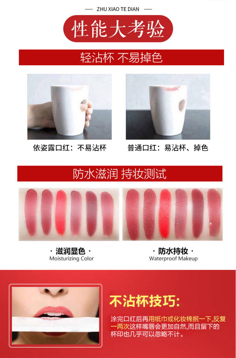 【第二件10元】【依姿露旗舰店】持久不脱色、多色可选,质地丝滑,莹润持妆、不干燥,魅力不止一面,高颜值,搭配网红色号。