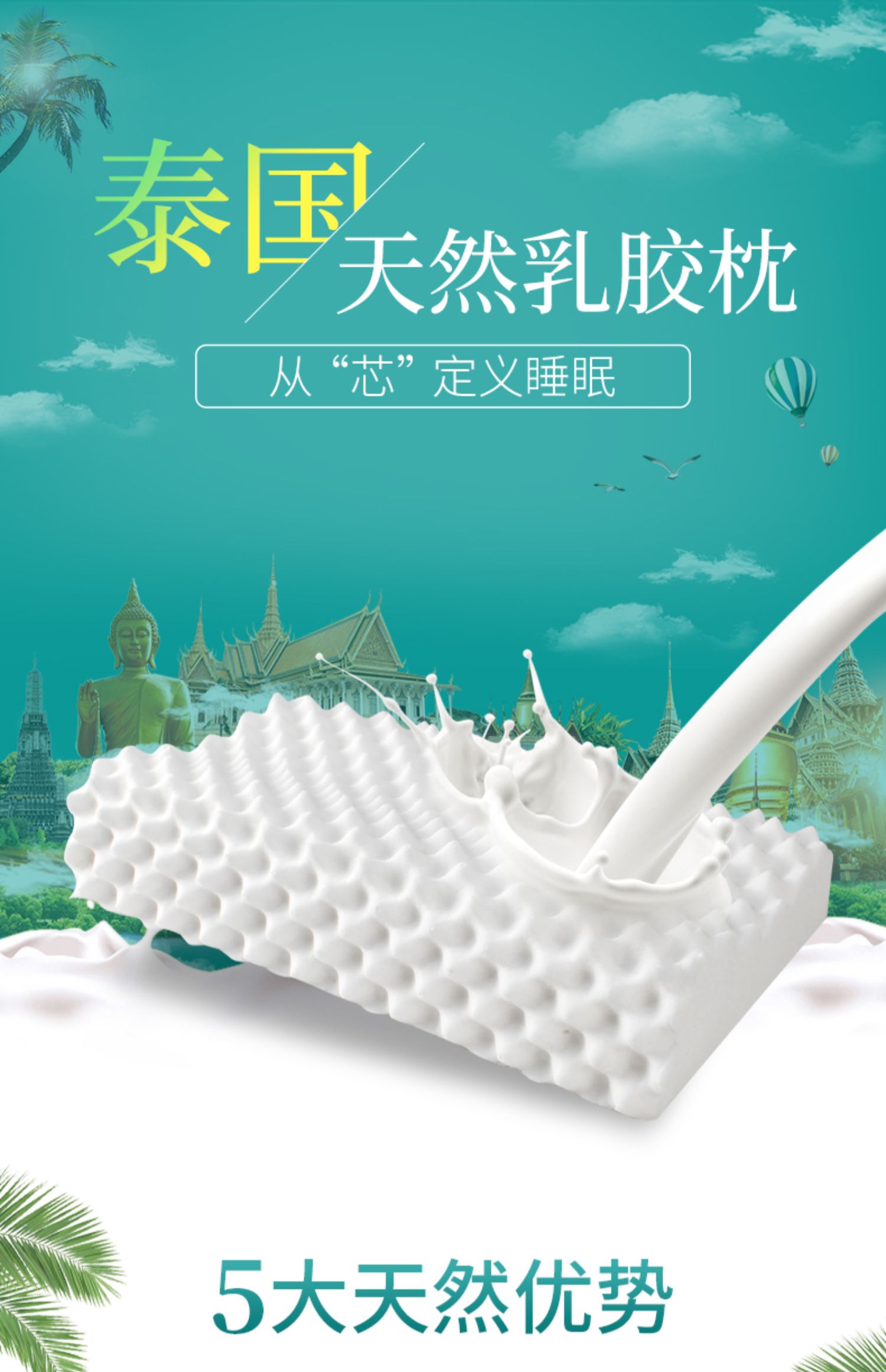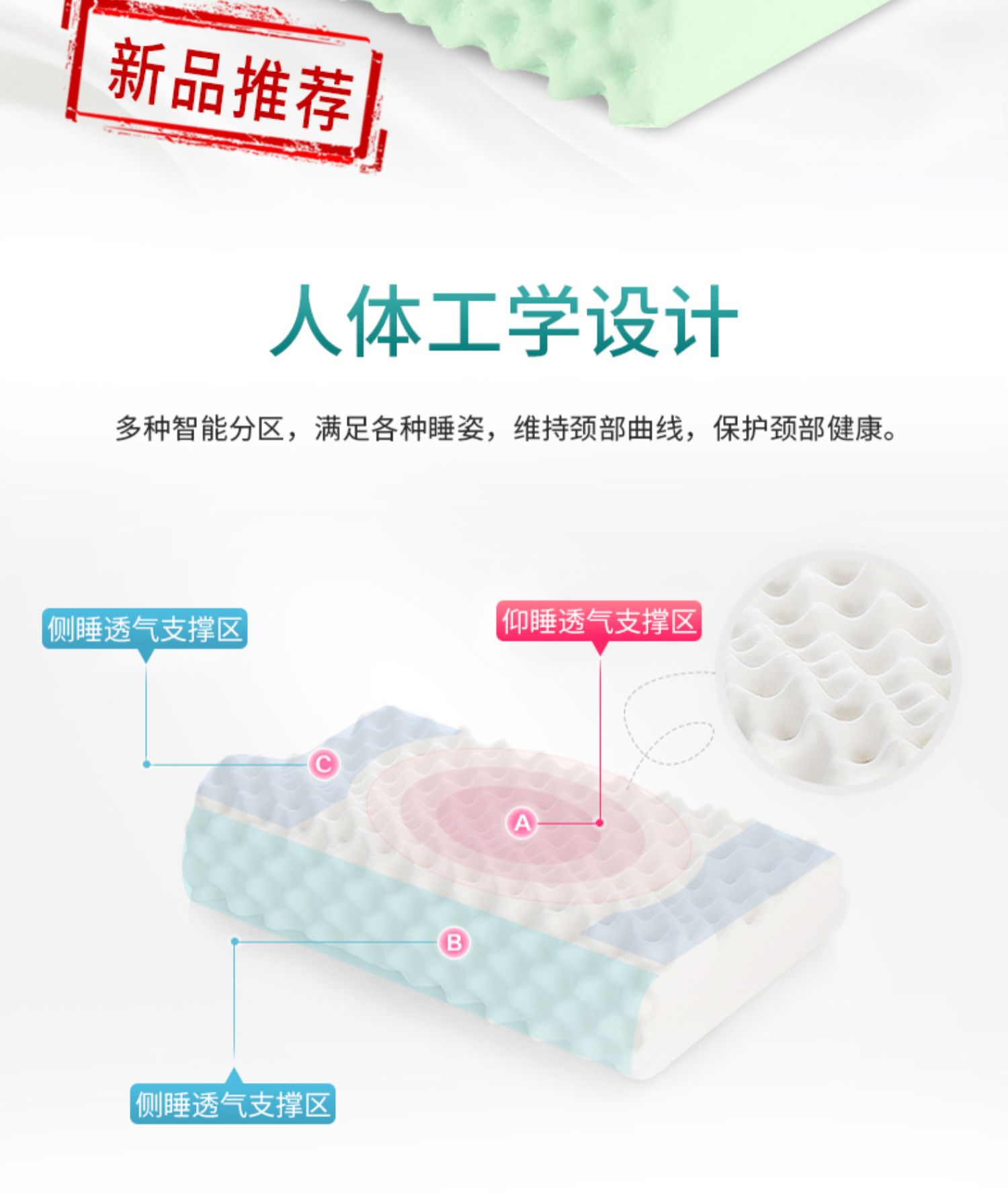泰国新科技乳胶枕,促进血液循环,除螨抑菌!每一次与它的共眠都是最棒的美容养颜,婴儿肌肤般的Q弹柔嫩,要健康要容光焕发从睡眠做起,千万家庭的选择!
