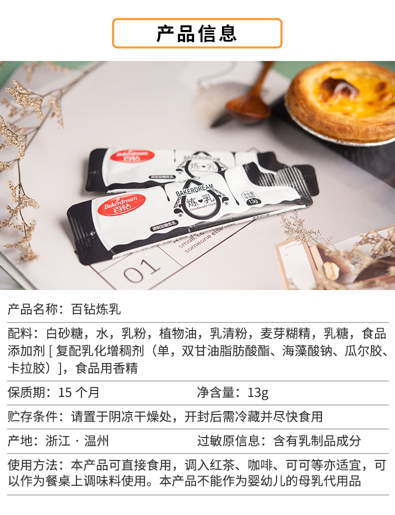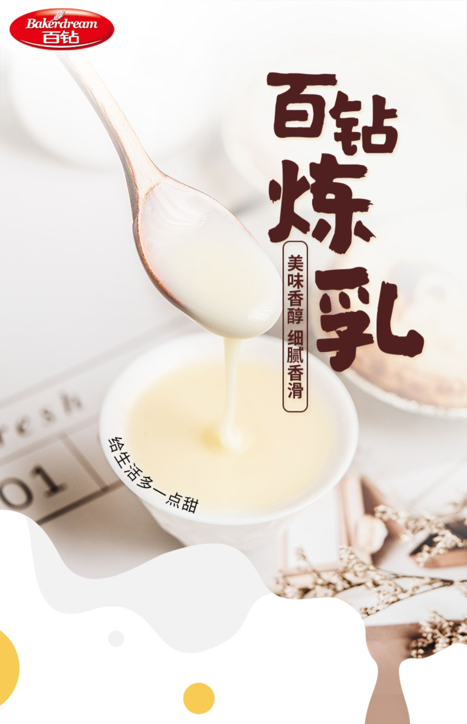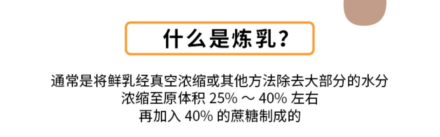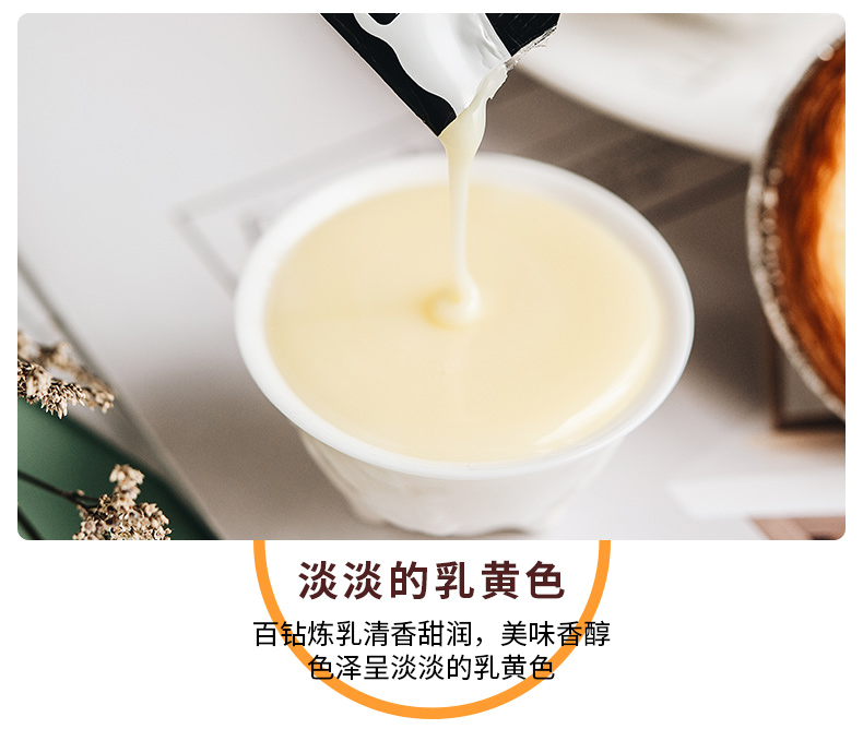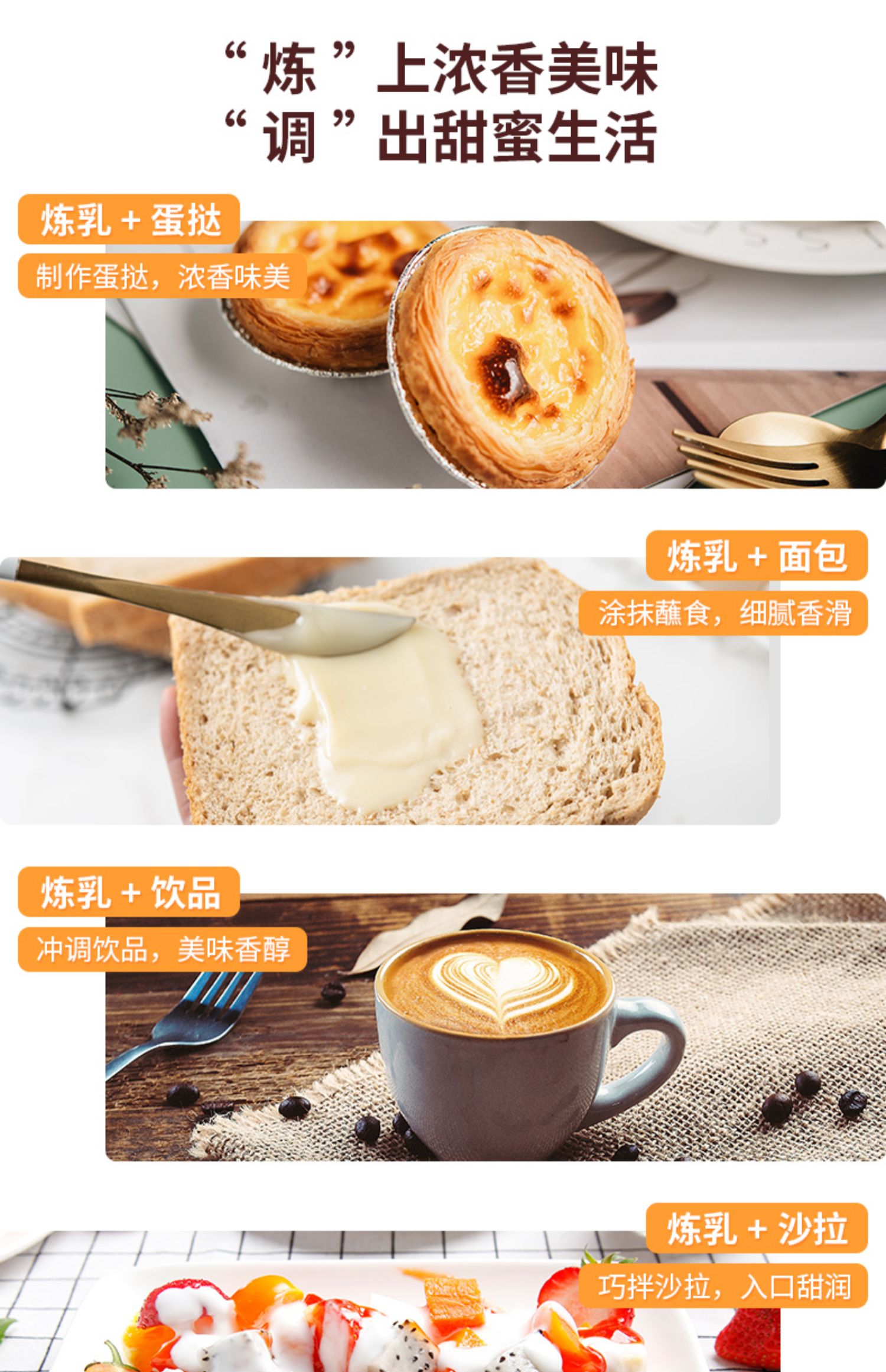 采用优质进口牛奶,浓缩后融合细砂糖成就质地醇厚,奶香味浓郁,调制饮品、蛋糕、沙拉的选择,营养丰富,口感浓郁,富含营养,是中西甜点中不可缺少的调味品!