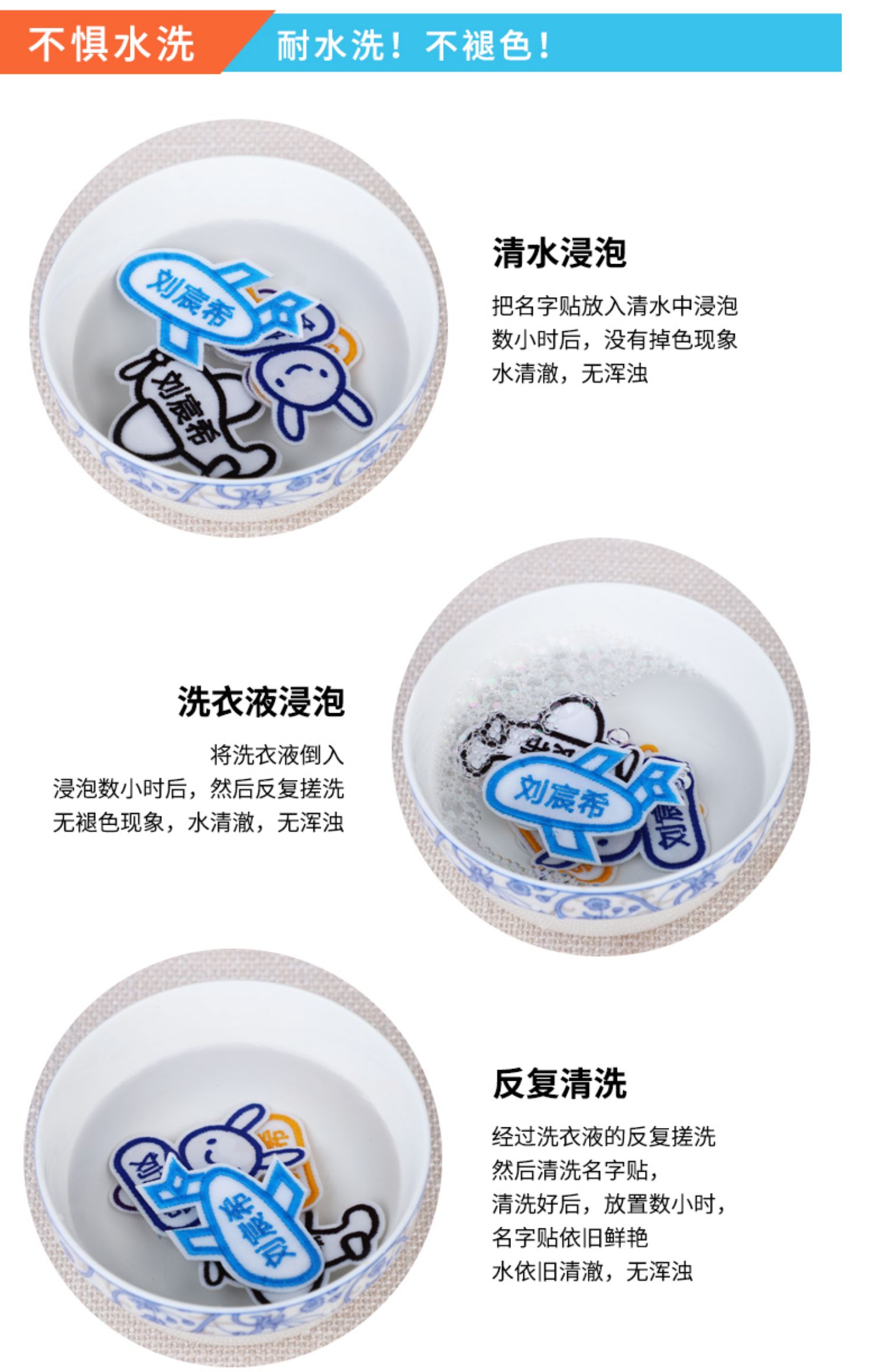 名字贴姓名贴布,可缝可烫幼儿园熨烫名字条,性价比超刺绣,进口油墨,环保背胶,质感柔软,不掉色耐水洗,无刺激气味哦,无化学气味哦,使用更放心,把宝宝的衣服配的美美哒!