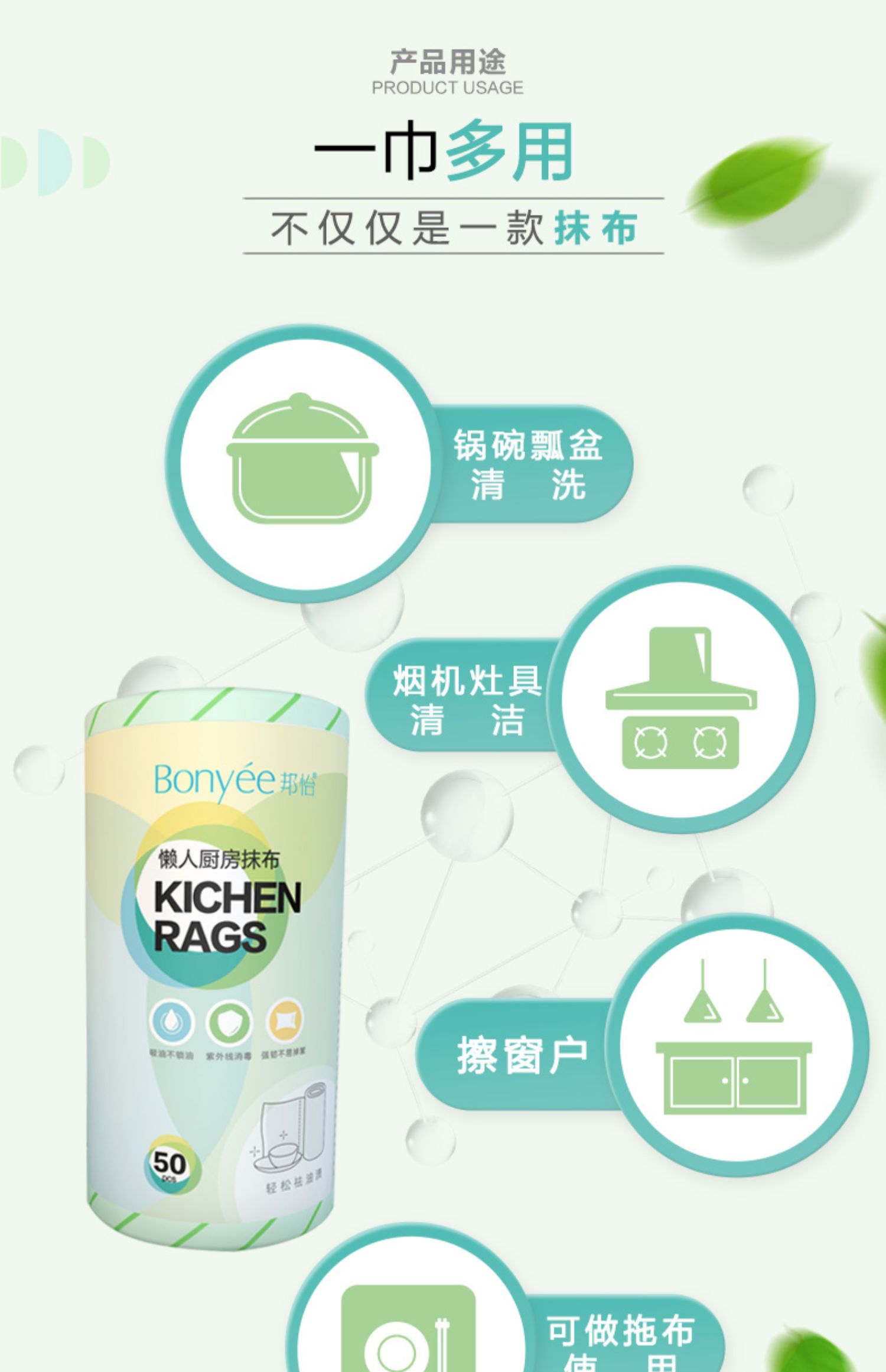 【满25送挂钩】懒人厨房轻生活,邦怡干湿两用一次性懒人抹布,吸油不锁油,紫外线消毒处理,强韧不易掉絮哦。一巾多用,点断可撕,方便取用,易清洗,油污清洗自然分离不粘抹布本身。
