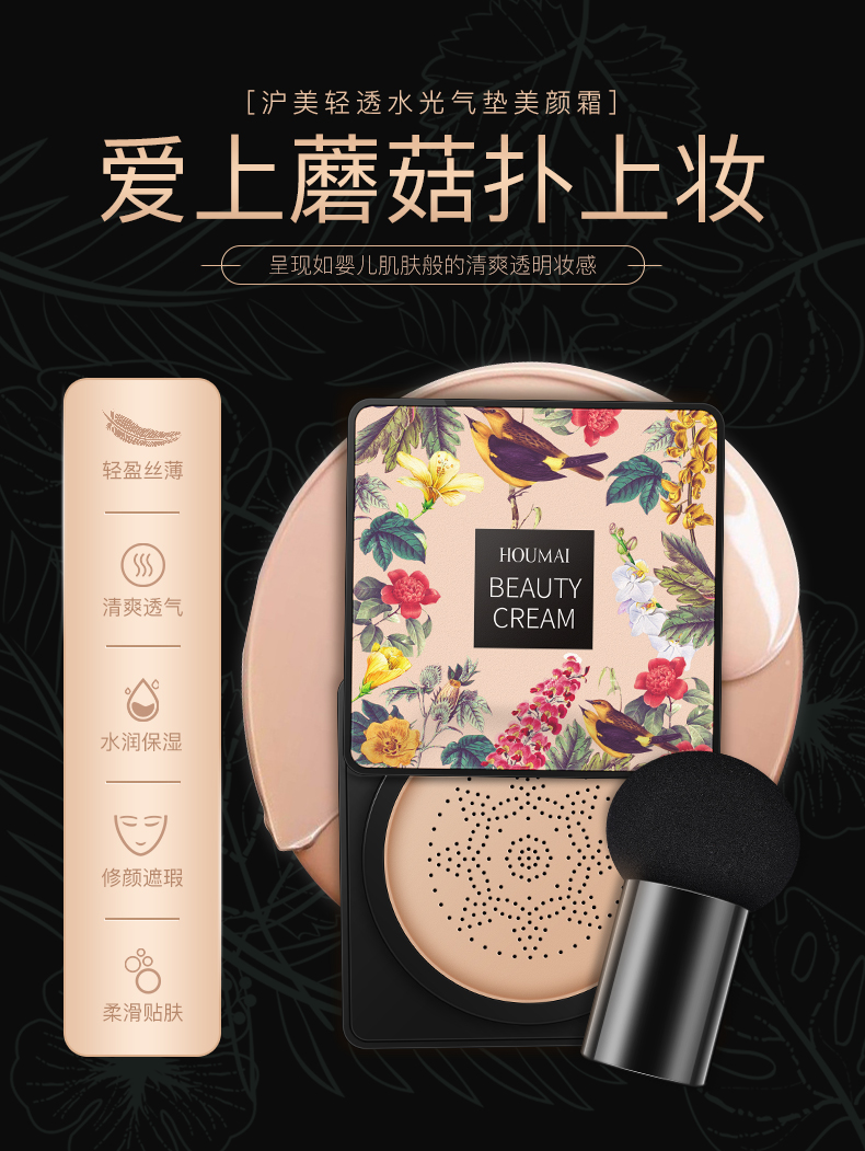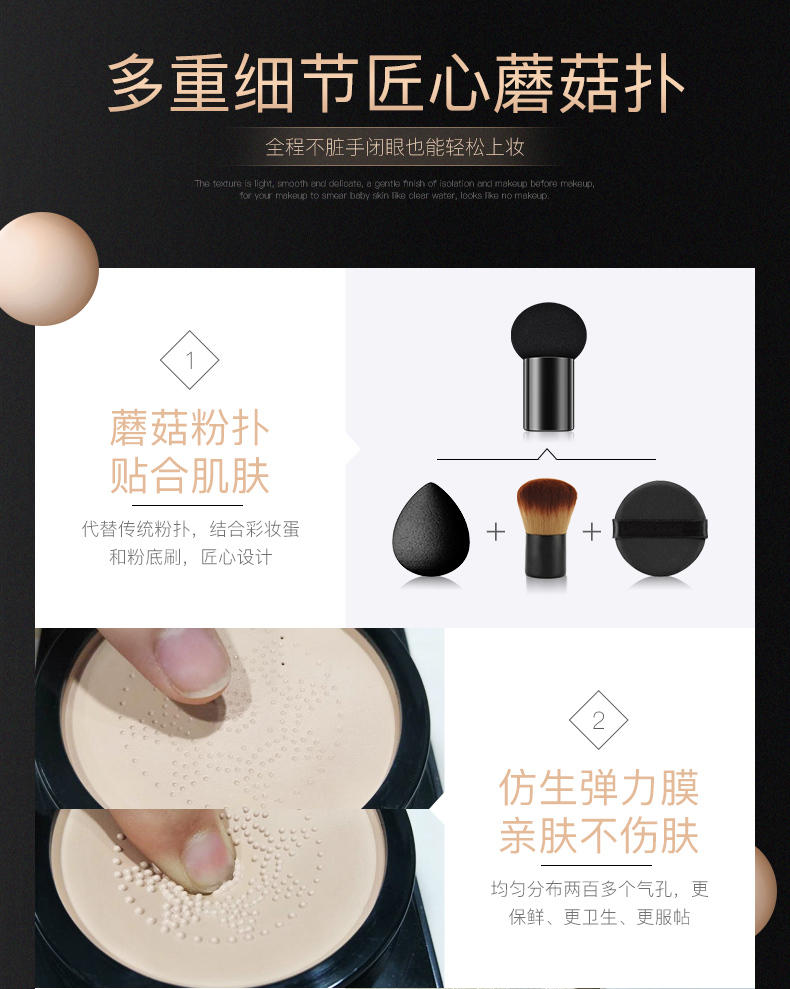 【第二件10元】匠心设计蘑菇扑,享受每一个上妆过程,粉底服帖透气,还能滋润皮肤,为自己选择最合适的色号,展示最美的东方之美!