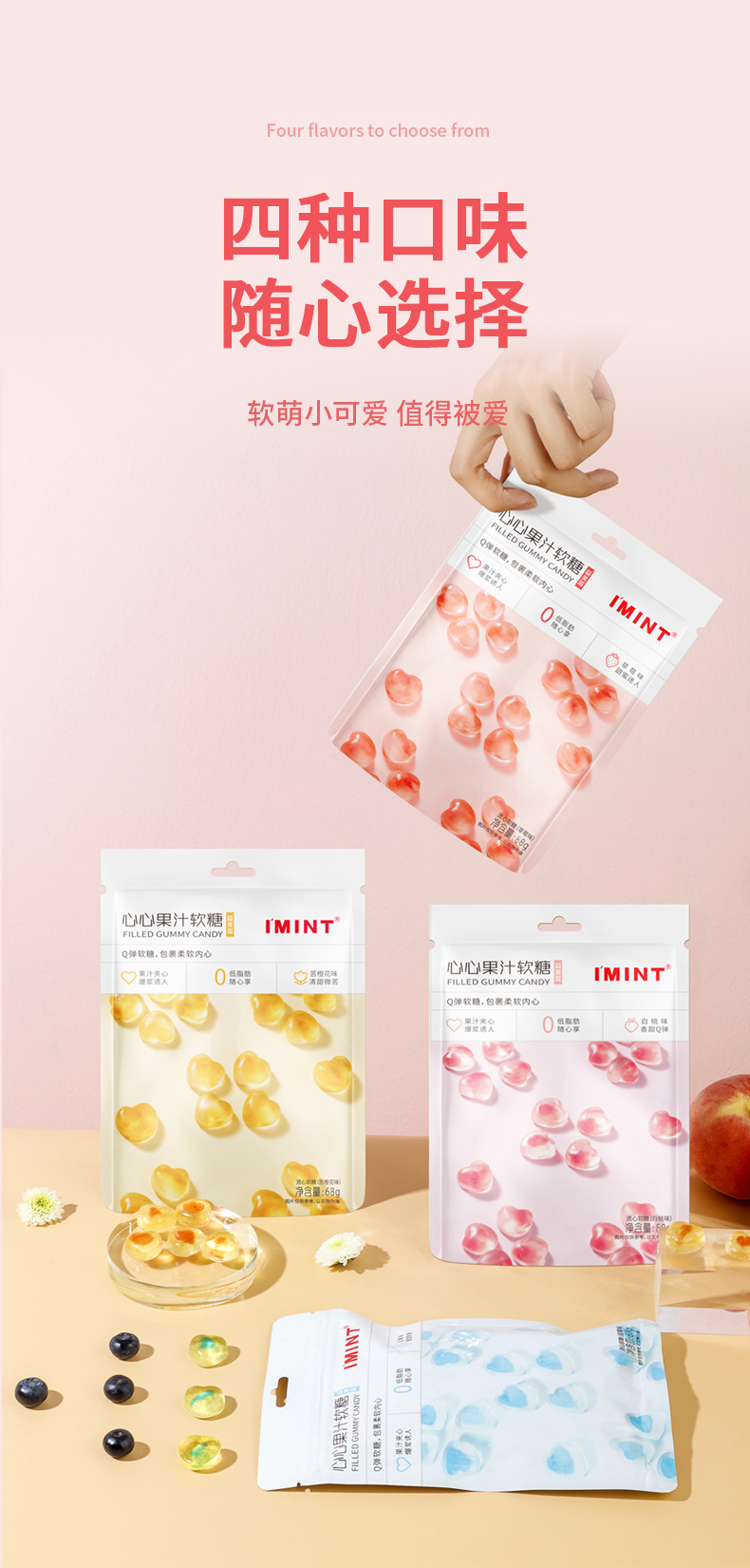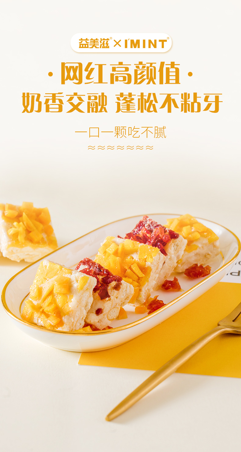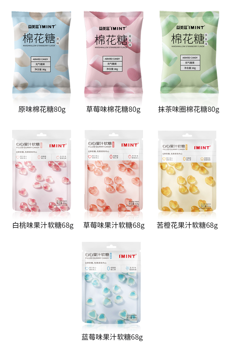 三种口味雪花酥,奶香交融,蓬松不粘牙,一口一个吃不腻!四种口味圈圈糖,圈住喜欢的味道!四种口味果汁软糖,随心选择Q弹小可爱!还有酥脆烤芙,酥脆可口,回味脆香!