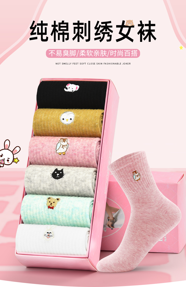 纯棉刺绣女袜,透气吸汗,不易臭脚,柔软亲肤,弹力舒适不紧勒,时尚百搭,多款可选