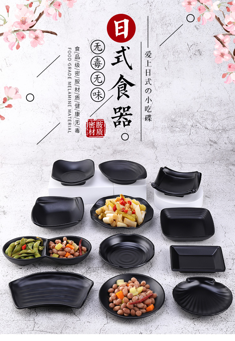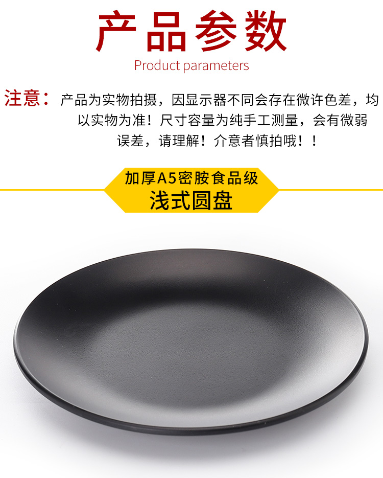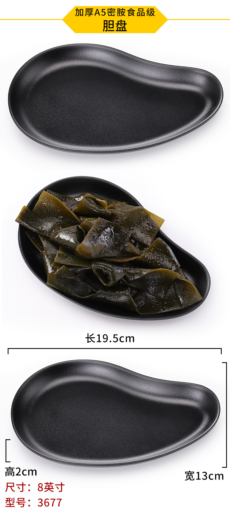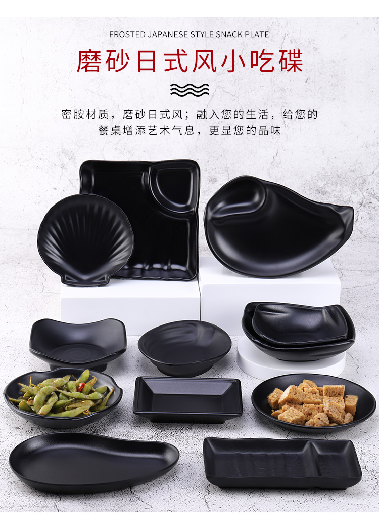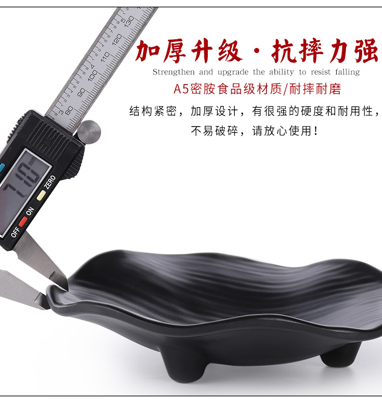 烧烤店专用小吃盘子,个性凉菜盘子,密胺黑色塑料餐具,匠心工艺,无毒无味,安全健康放心使用,加厚升级,抗摔率强,没有过多的装饰,颜值于品质并存,加厚耐摔。