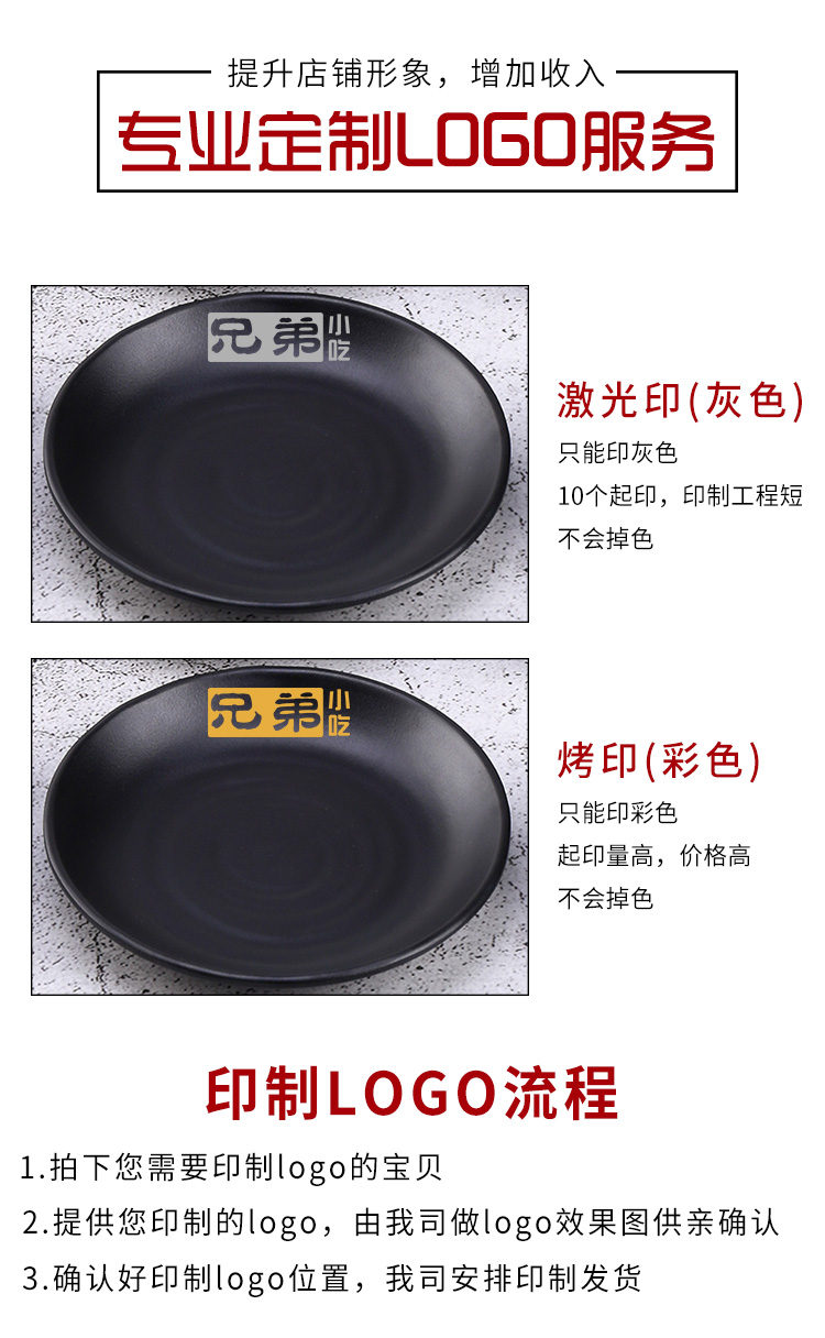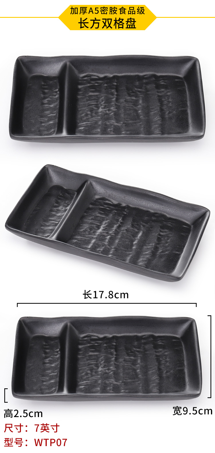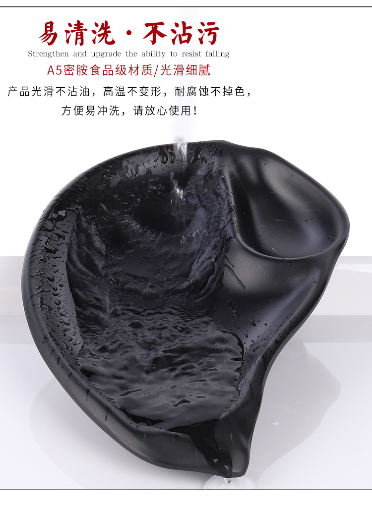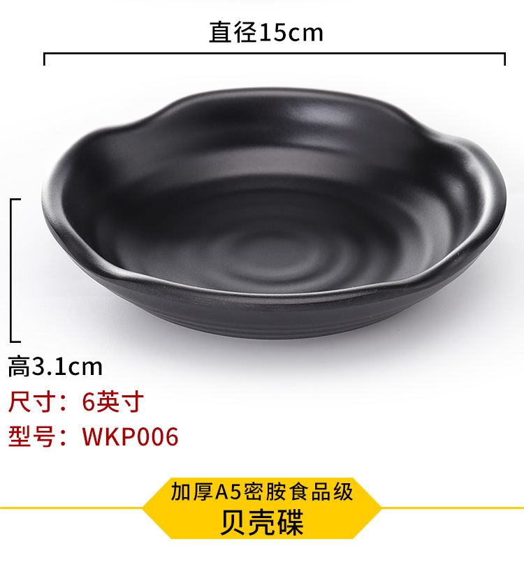烧烤店专用小吃盘子,个性凉菜盘子,密胺黑色塑料餐具,匠心工艺,无毒无味,安全健康放心使用,加厚升级,抗摔率强,没有过多的装饰,颜值于品质并存,加厚耐摔。