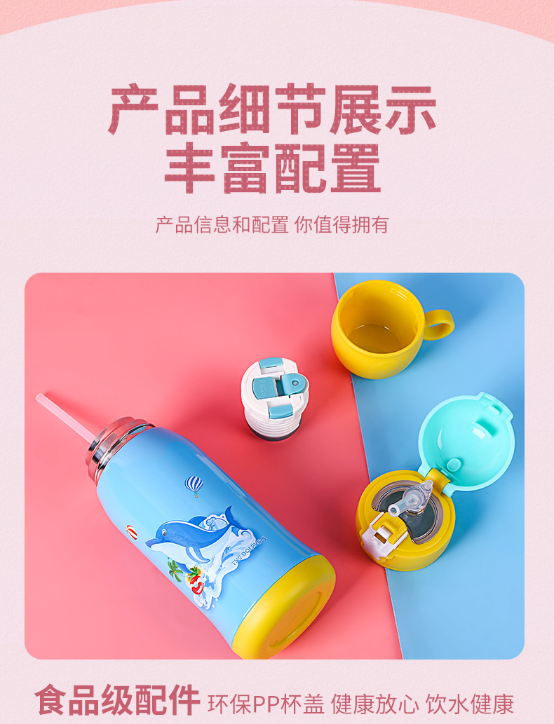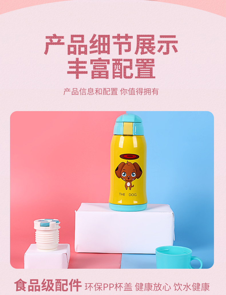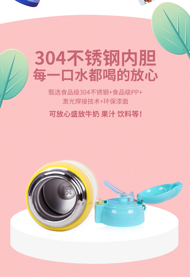 超高颜值的儿童保温杯,让宝宝爱上喝水!304不锈钢,双层保温,弹跳开关,轻松按压喝水,持续保温不漏水,特别实用~【赠运费险】