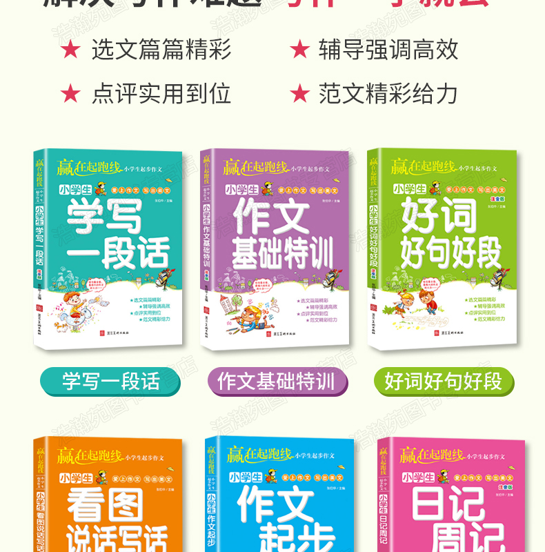 全套6本作文书!加厚版【班主任推荐】1-3年级满分作文,好词好句好段,看图说话写作,让小学生写作赢在起跑线上,手把手教孩子学会写作文,书店一套起码得50多,活动9.8抢,赶快给孩子屯一套!