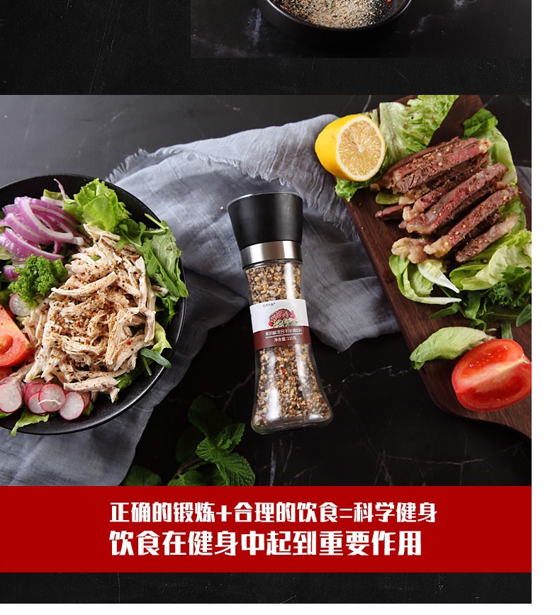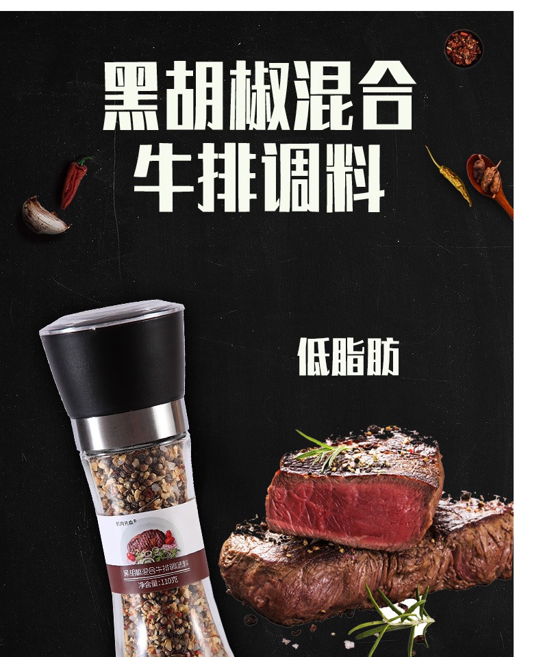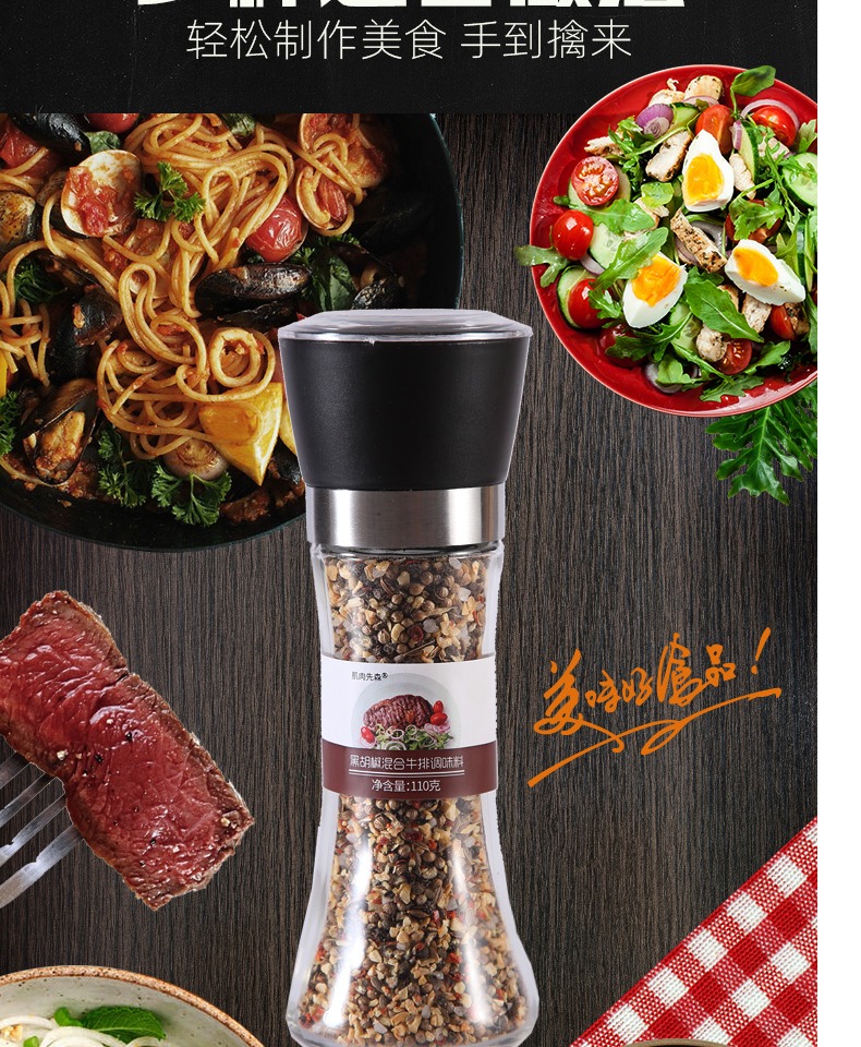肌肉先森,陶瓷材料,黑胡椒粒海盐煎牛排调料+研磨器,让您告别腌牛排的烦恼,厨房小白也能轻松驾驭,含大蒜,海盐,黑胡椒,千里香,香菜籽,辣椒,口感更加丰富,让您爱上吃牛排,速来抢购