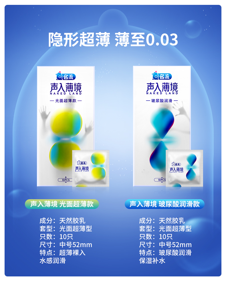 【名流官方旗舰店】高倍润滑,裸入超薄,持久润滑,薄似无感,给你不一样的完美体验【赠运费险】