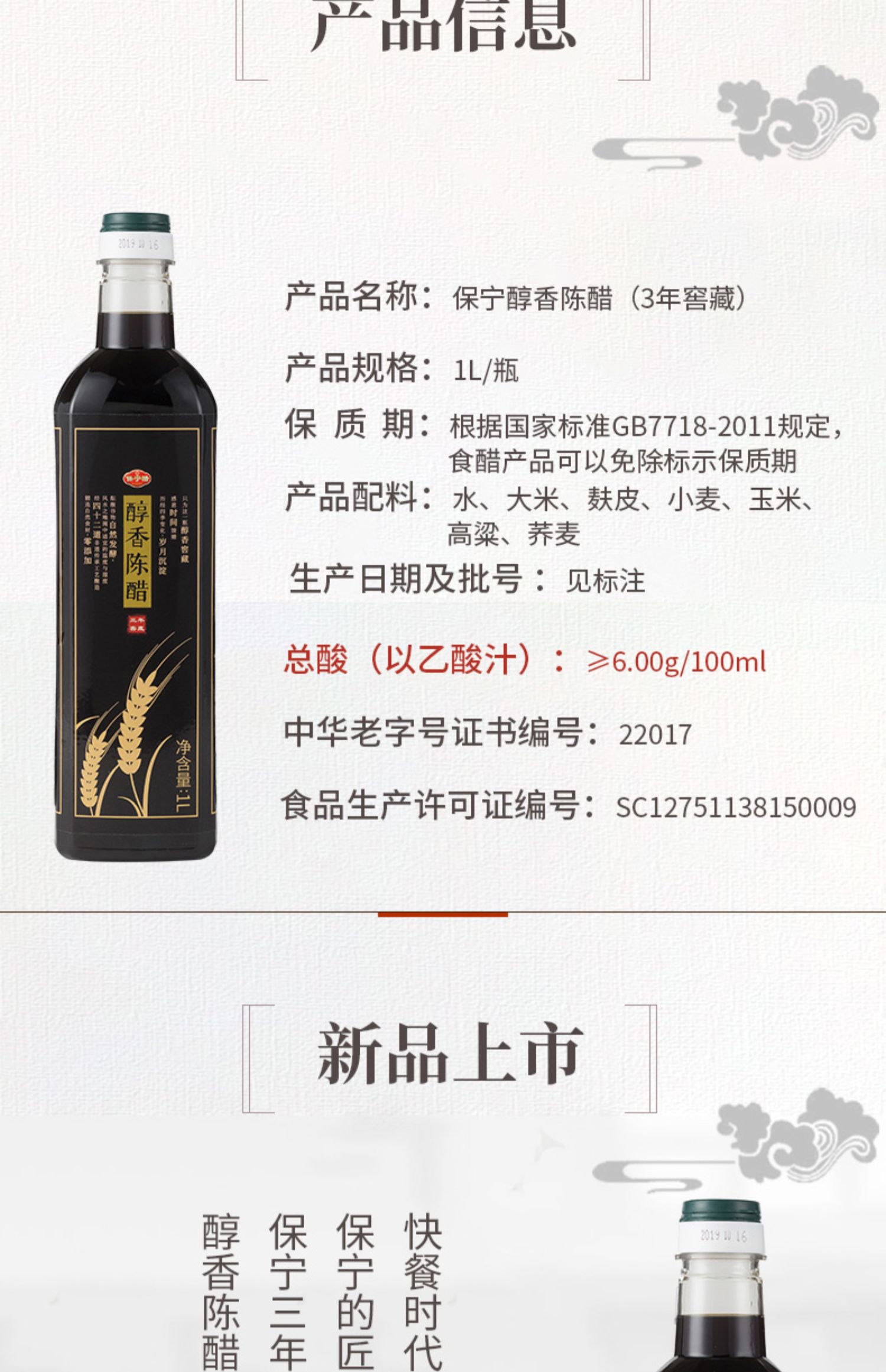 【保宁】醇香陈醋,优质谷物酿造,绿色食品,柔和细腻,醇厚绵甜,纯粮酿造,特有醋香、熏香、醇香、酯香相互衬托,浓郁协调细腻~【赠运费险】