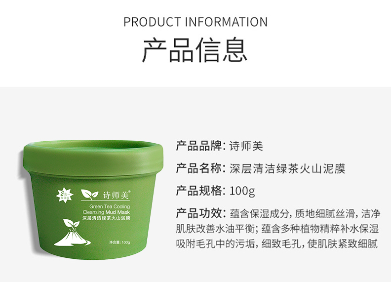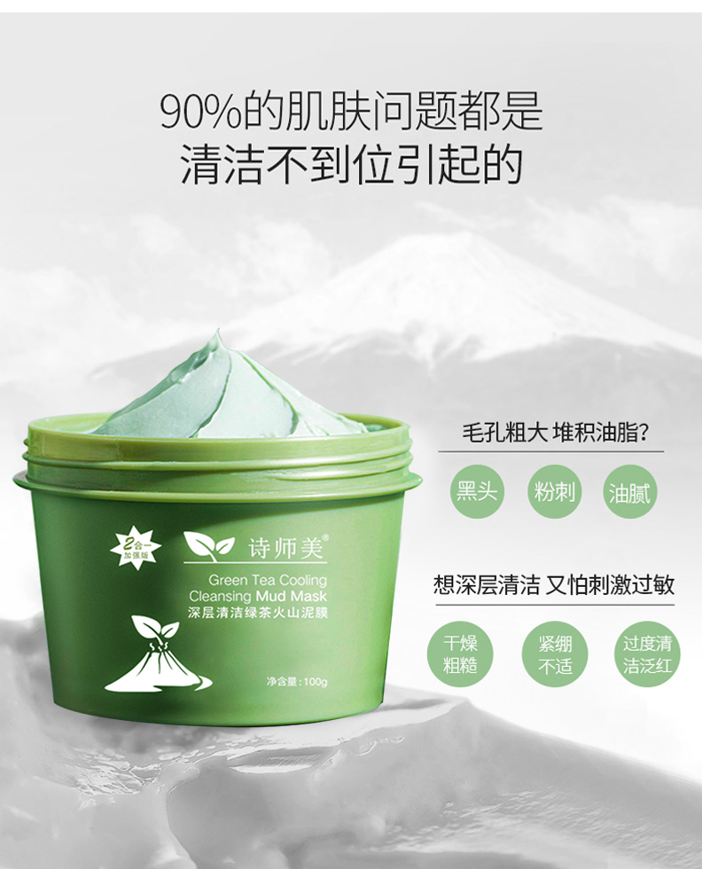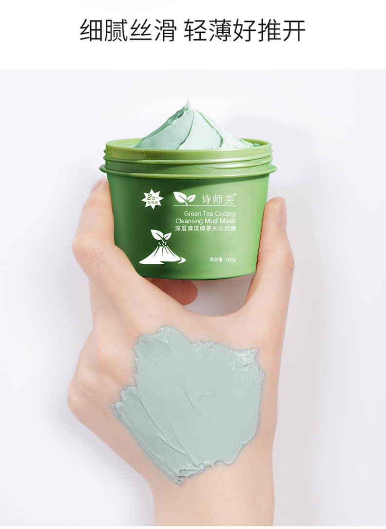 绿茶火山泥膜100g,含有吸附能力超强的高岭土成分,深层清洁,清除黑头/白头,净痘嫩肤,进口的凡士林成分和绿茶成分,保湿美白的效果非常的好~