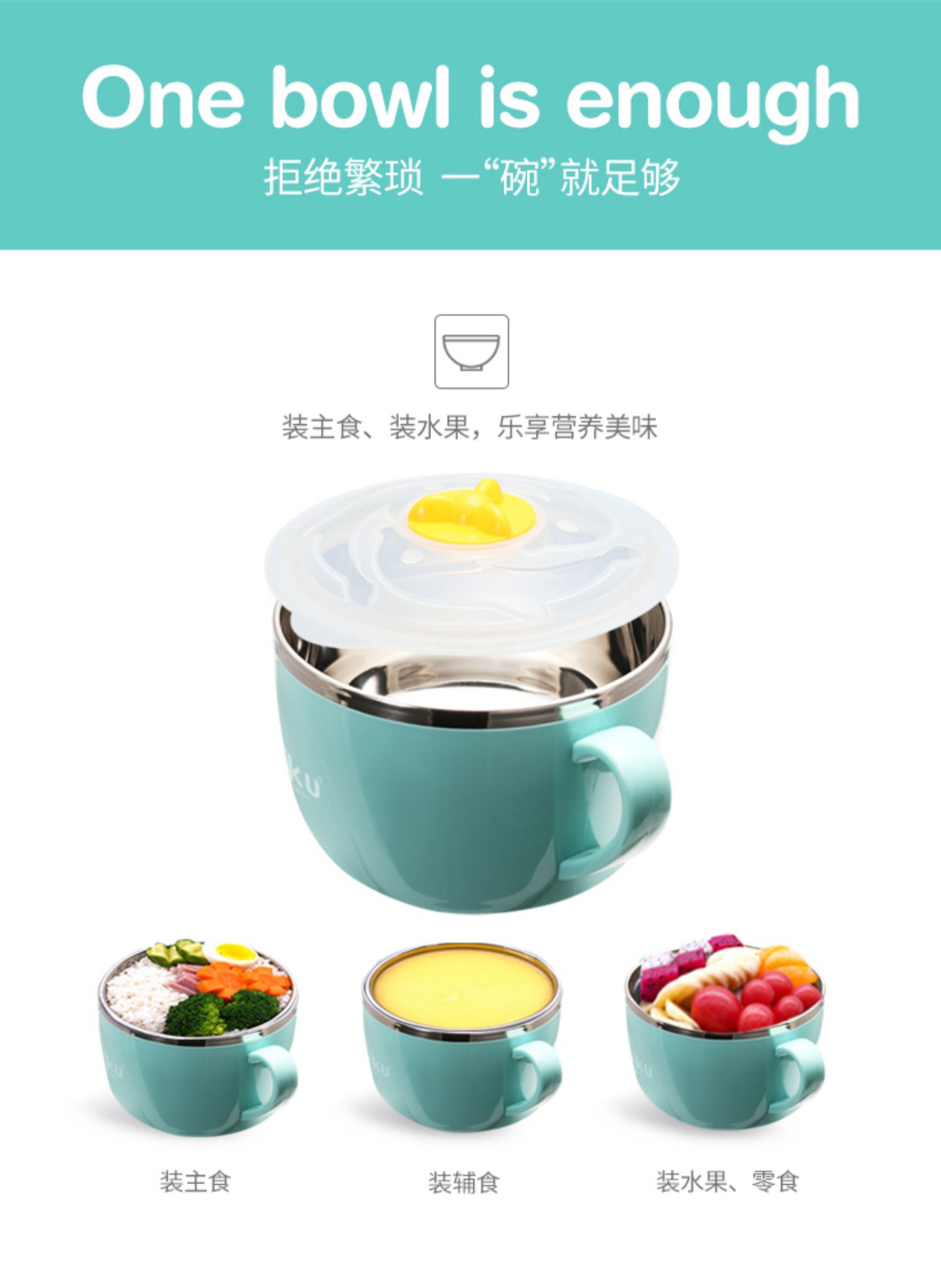 【turku】不锈钢碗,食品级PP材质,安全无异味,拒绝繁琐,一碗就足够,装主食,装水果,乐享营养美味!保温效果好,耐氧化,耐腐蚀性更强!宝妈速抢!