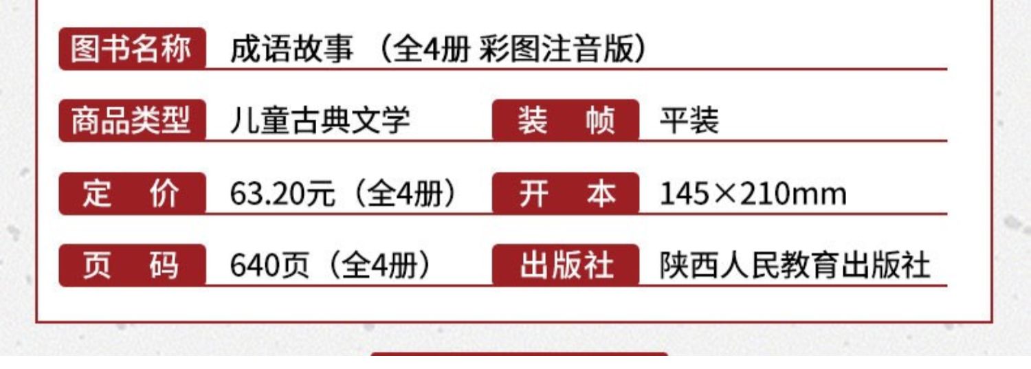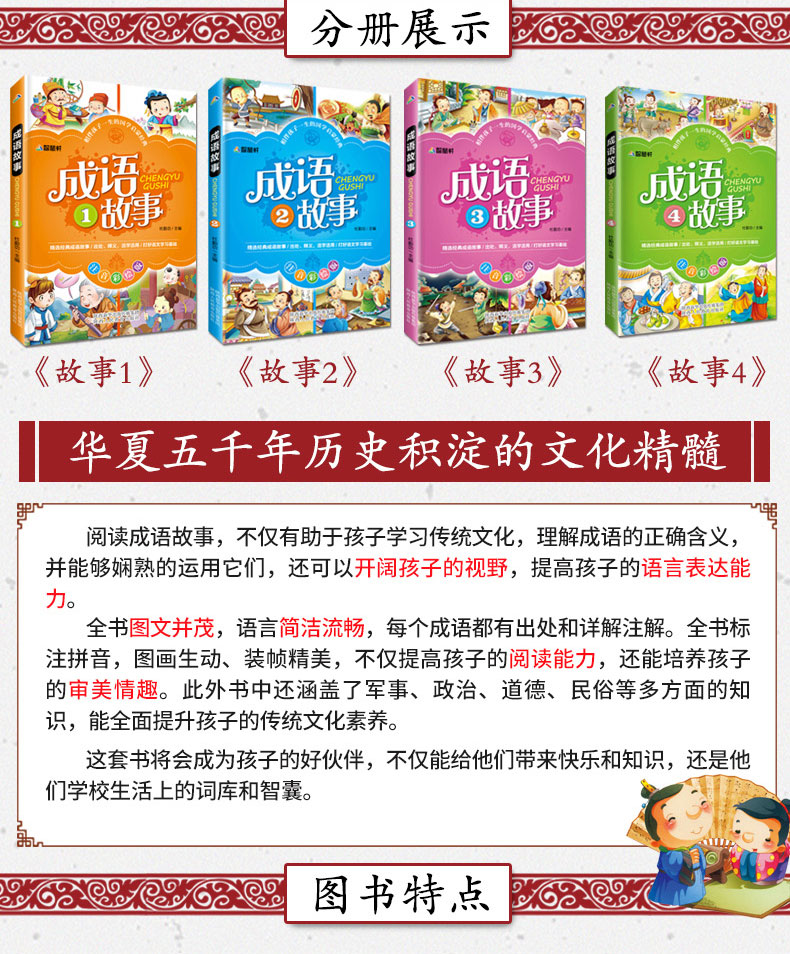 超值4册装,语文新课标阅读丛书,传承古典文化,弘扬国学经典,精美插图,大字护眼,出口成章的能力,一个成语浓缩一段历史,一个故事演绎一种智慧!