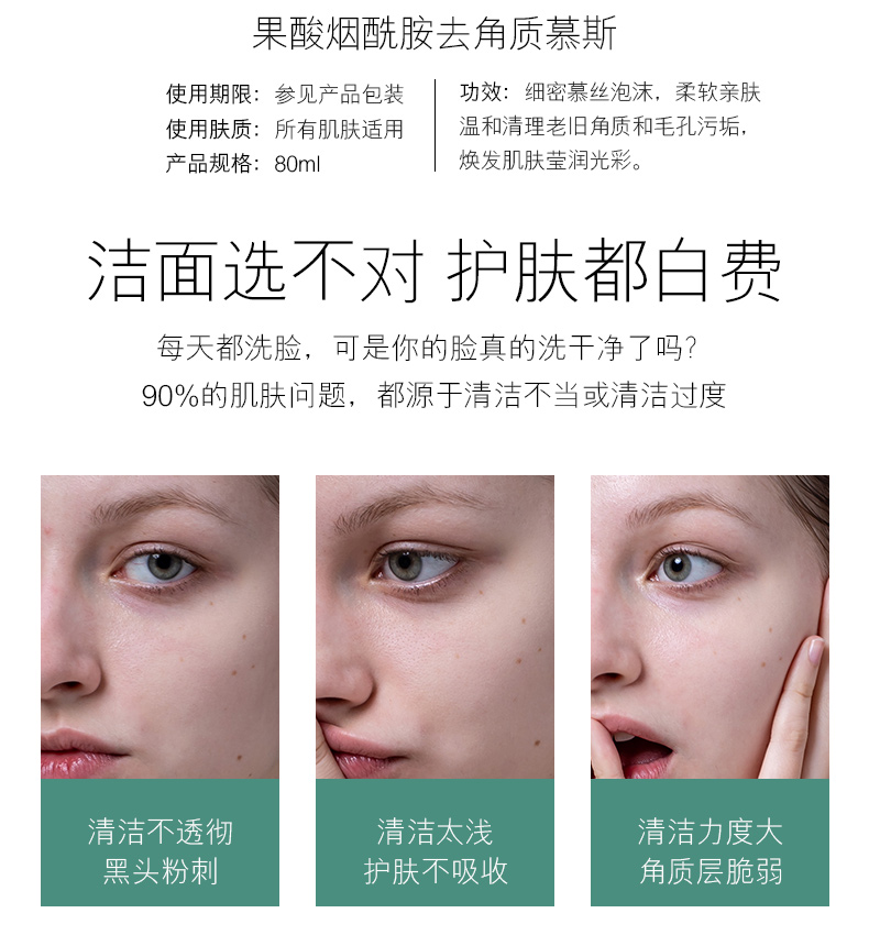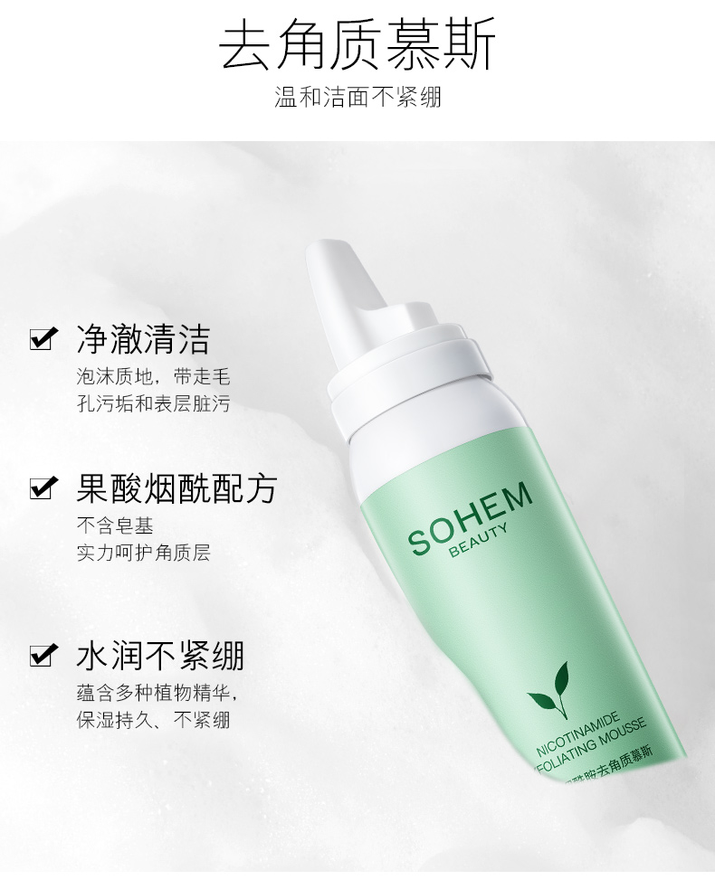 【仕欧泉】果酸烟酰胺去角质慕斯80ml,慕斯净透祛角质神器,天然植物成分,温和配方不刺激,深层去除死皮污垢,清洁毛孔黑头油脂,全身都可以用,让肌肤柔嫩细滑有光泽,皮肤更白皙~【7天无理由退换】