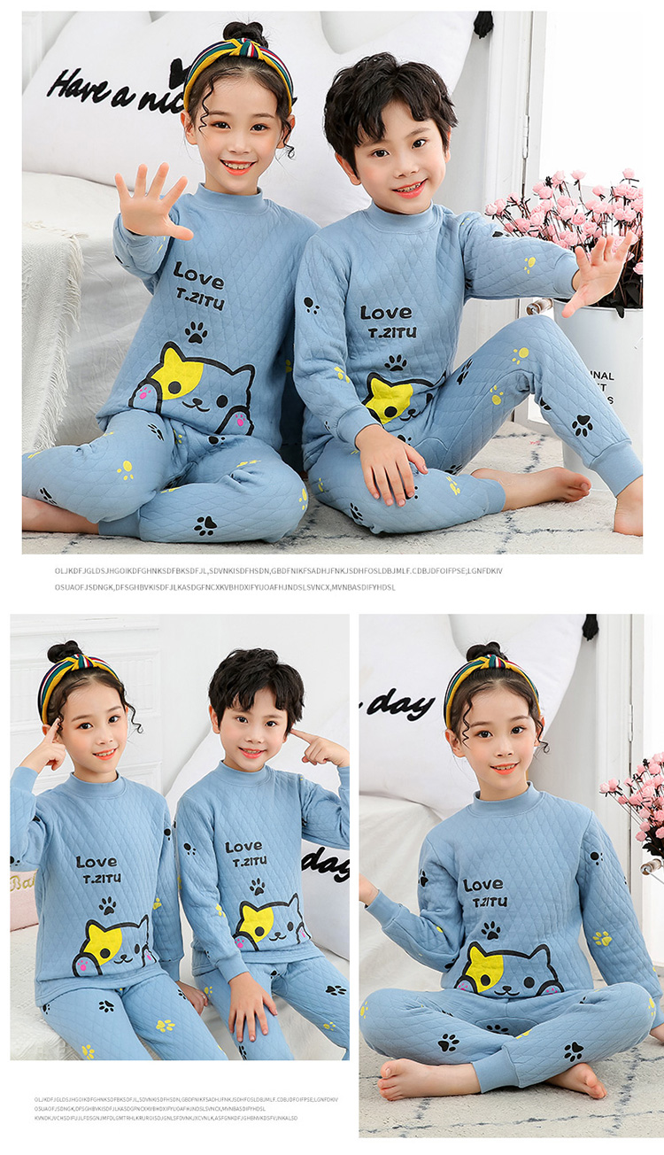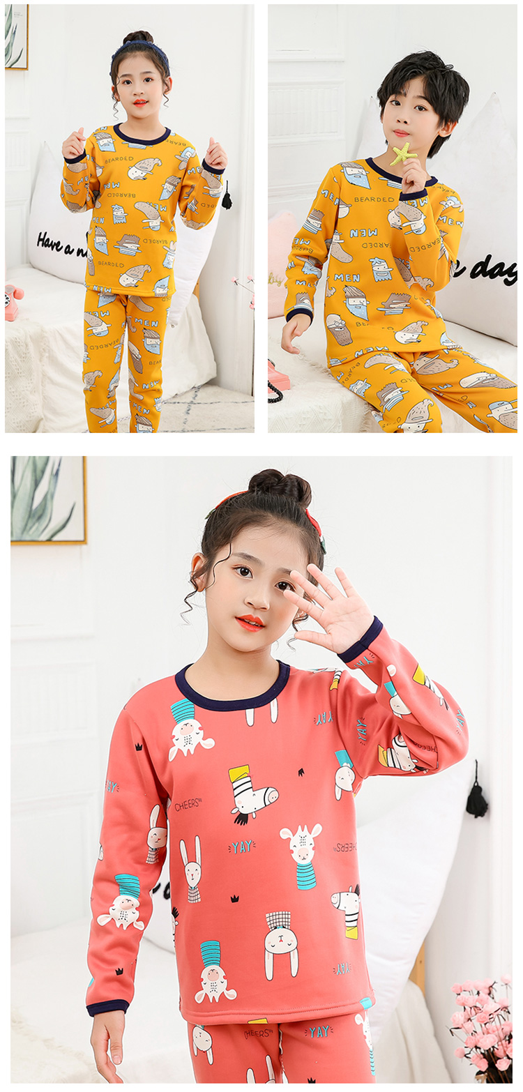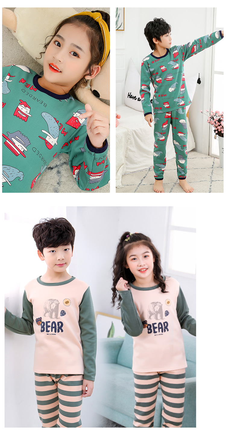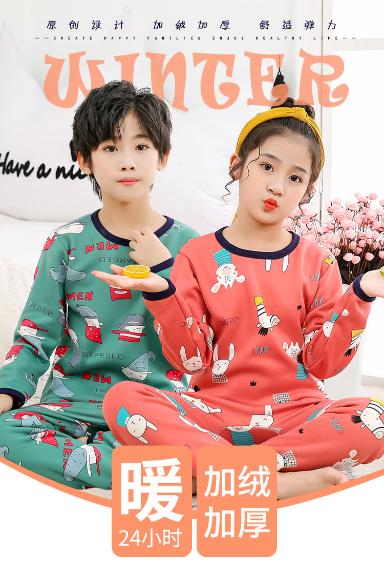 儿童加绒加厚保暖内衣套装,加绒抗寒防冻,细腻绒毛,亲肤不刺激,给孩子们很好的呵护!健康又保暖,不褪色不起球,值得推荐!