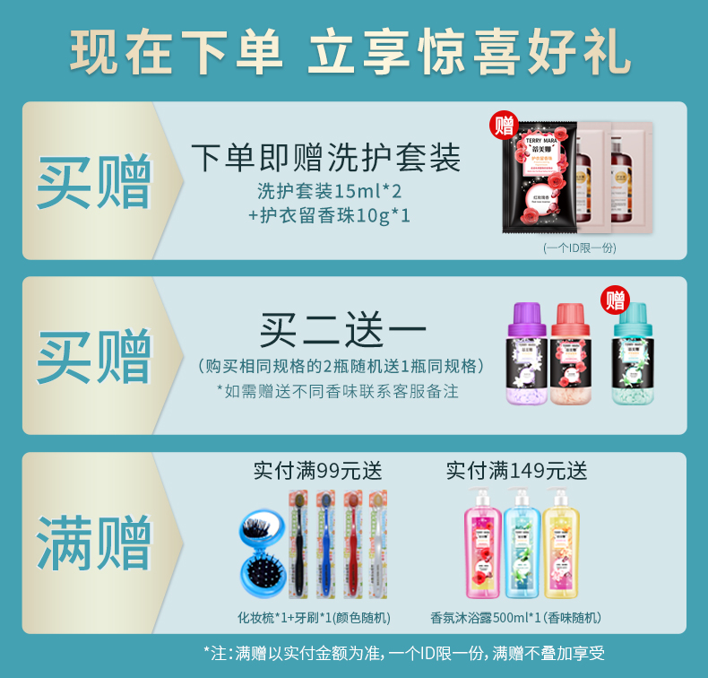 【买一瓶送留香珠10g*1+洗护15ml*2,买两瓶送同款】衣服香水柔顺剂护衣留香珠,增柔护衣,祛除异味,持久留香,草本亲肤。【赠运费险】