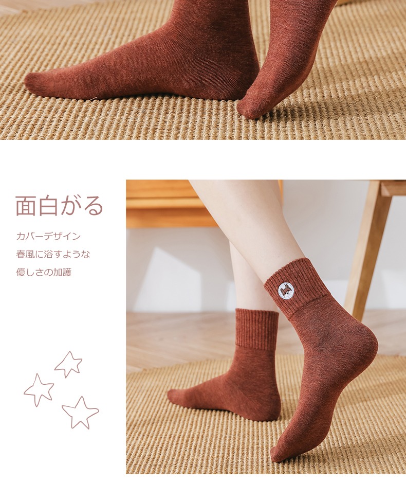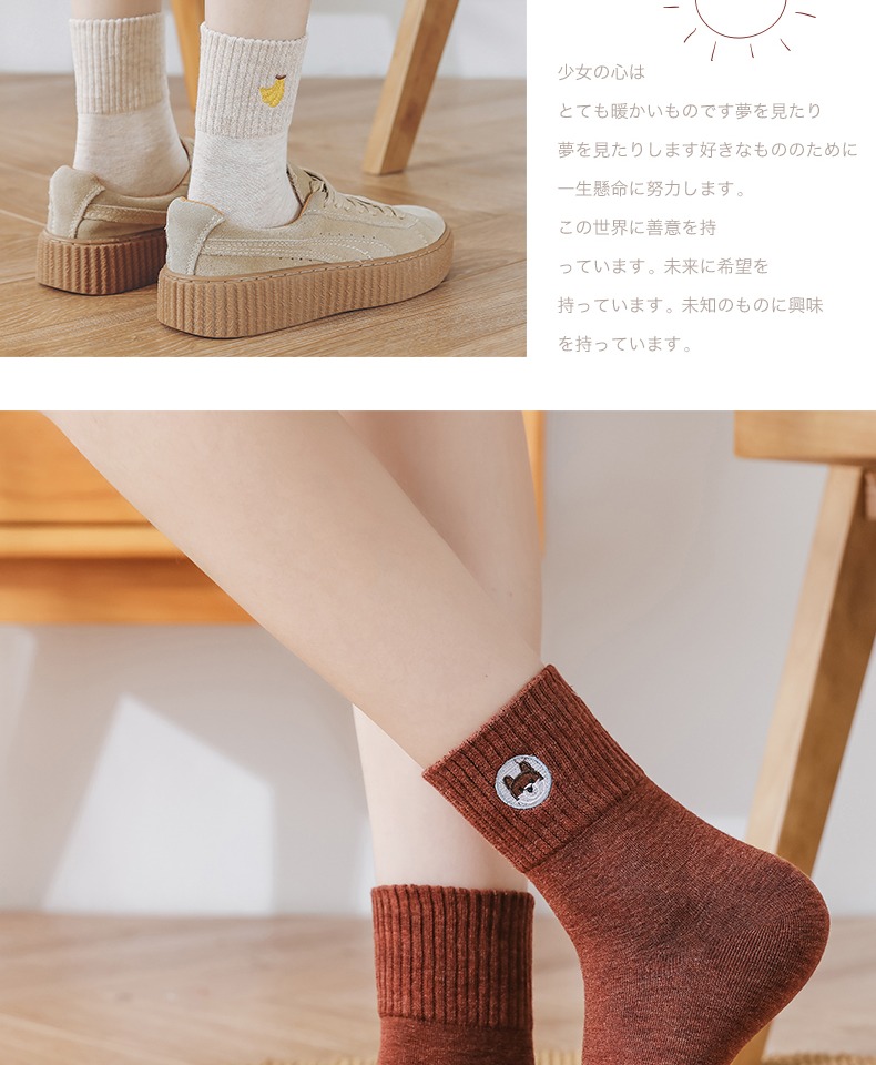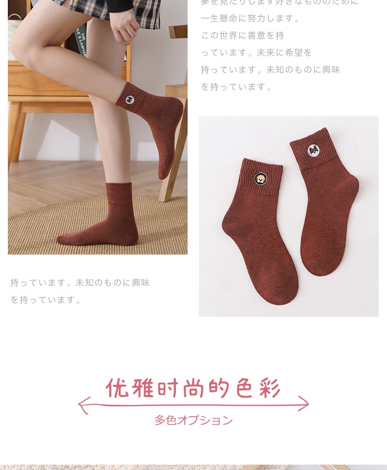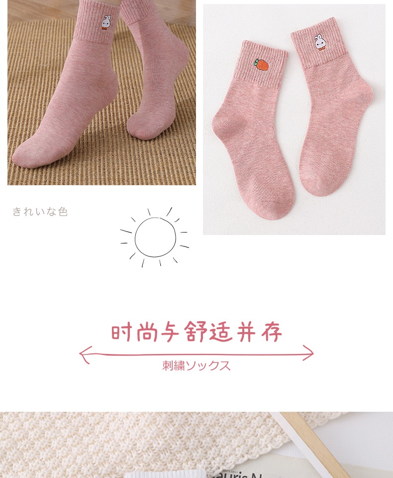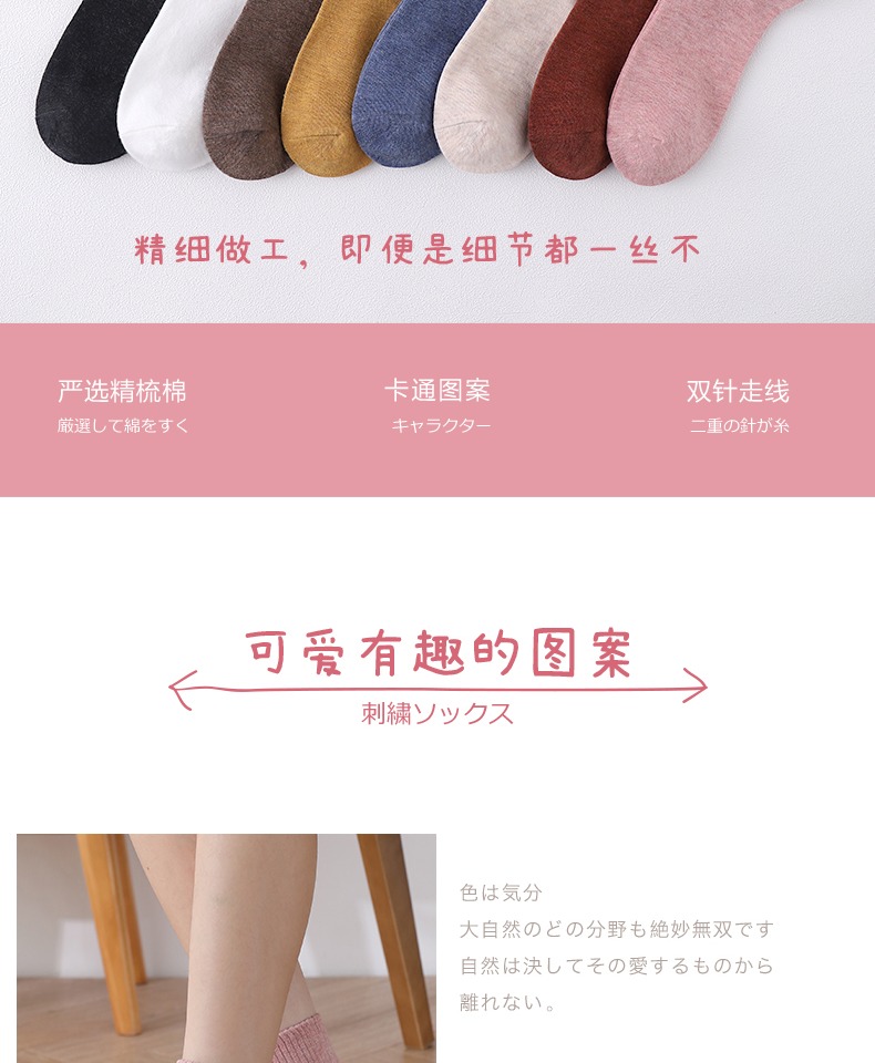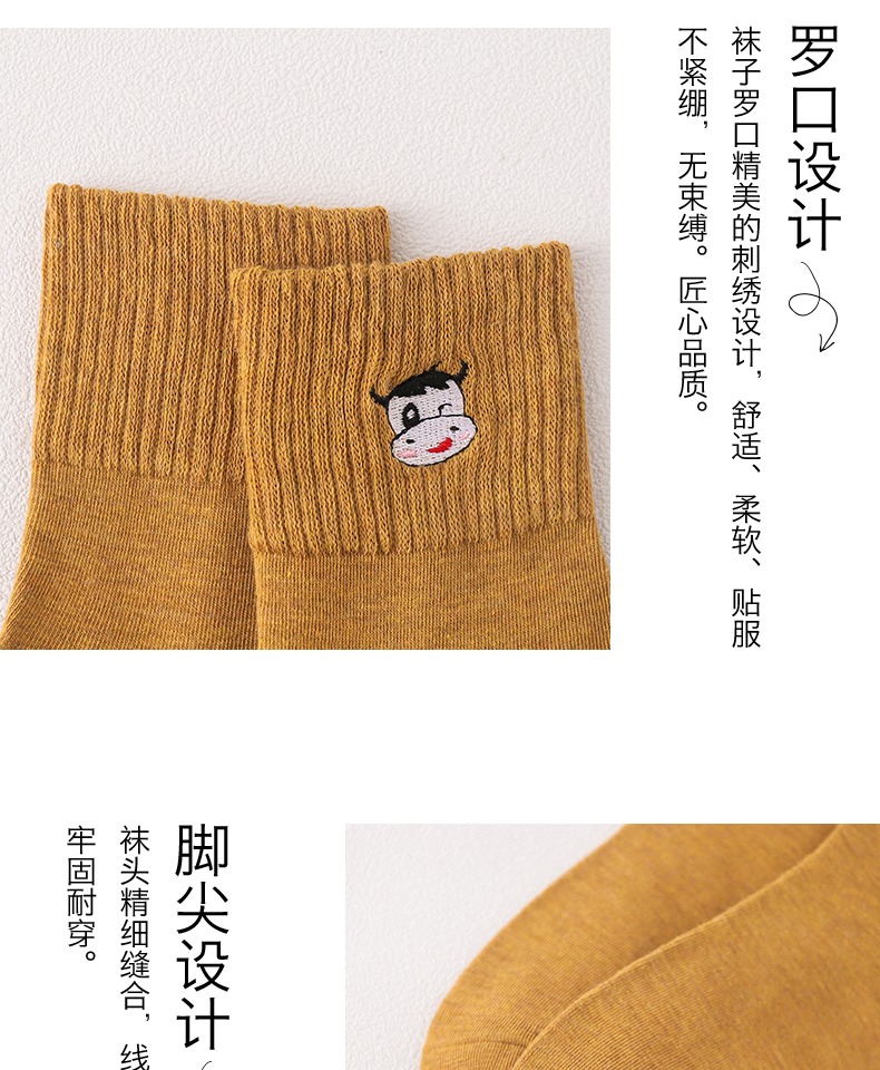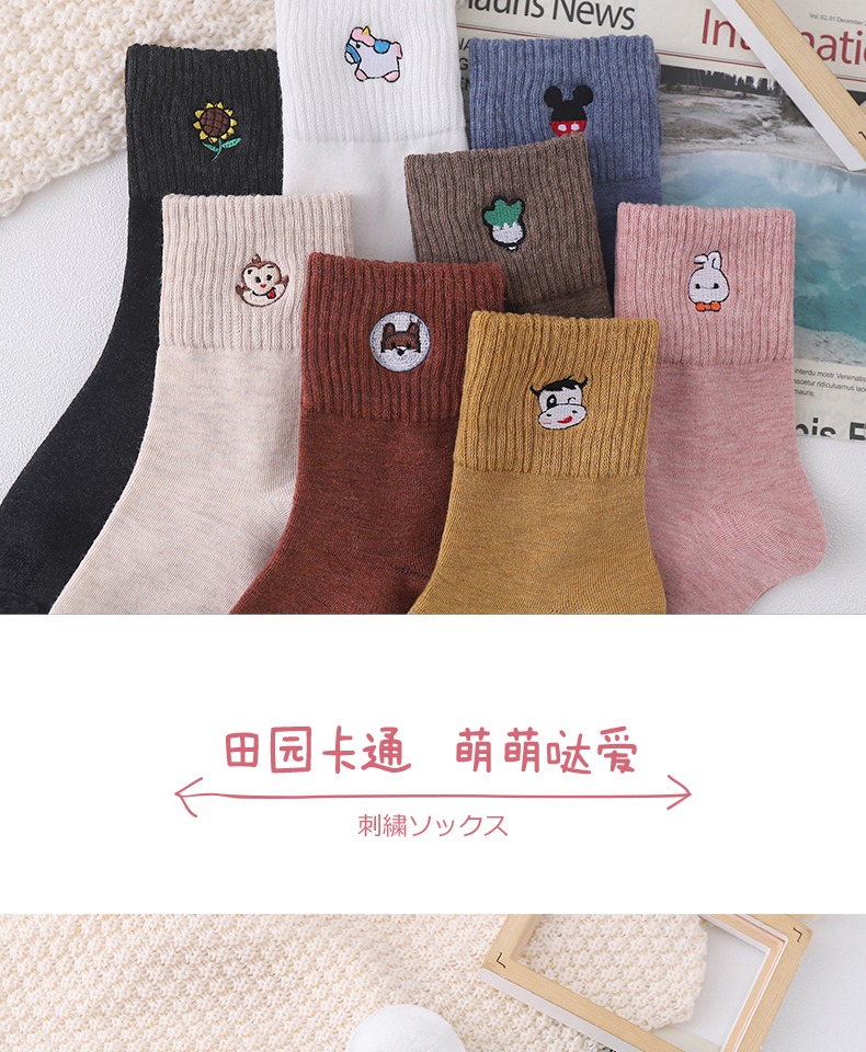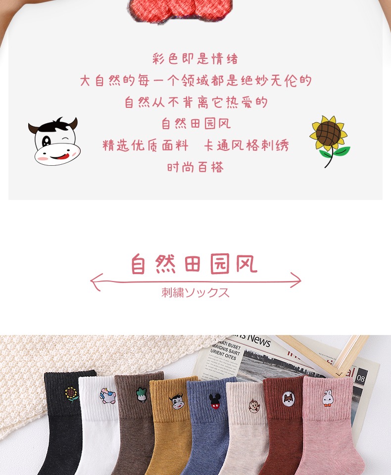 【5双装】田园风日系刺绣女袜,严选精梳棉,精细做工,柔软亲肤,吸汗透气,线条平整不磨脚,袜口精美刺绣设计,卡通造型,时尚百搭,秋冬季高颜值中筒袜!