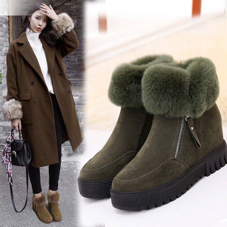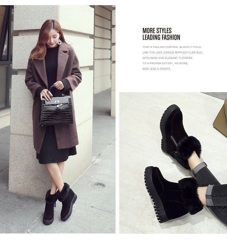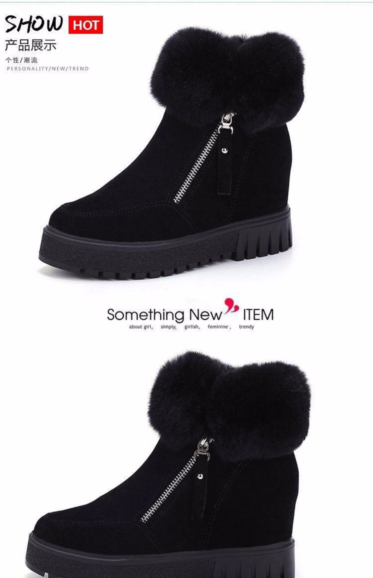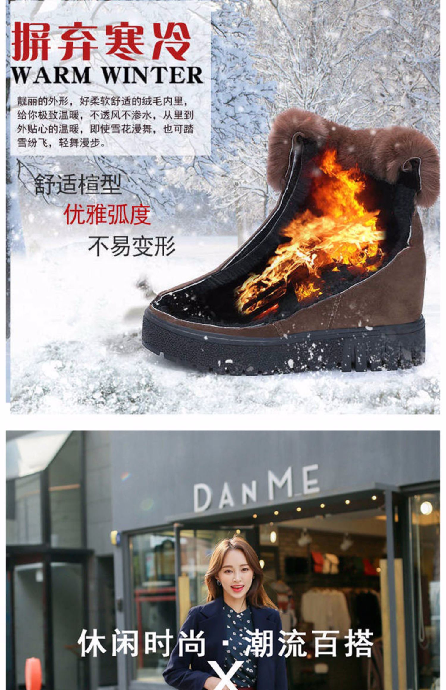 内增高雪地靴女短靴兔毛加绒靴保暖棉鞋