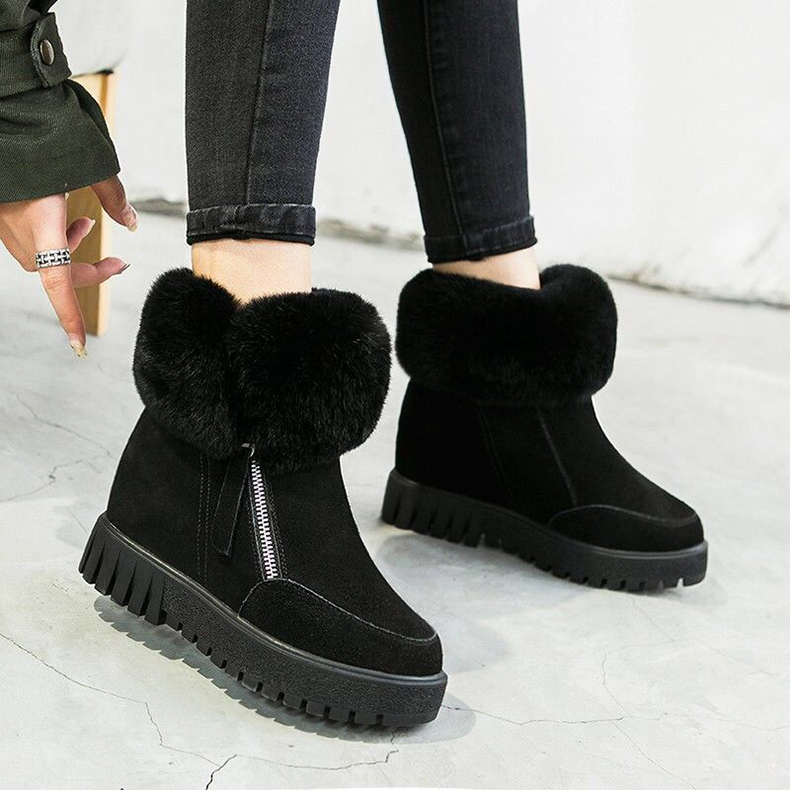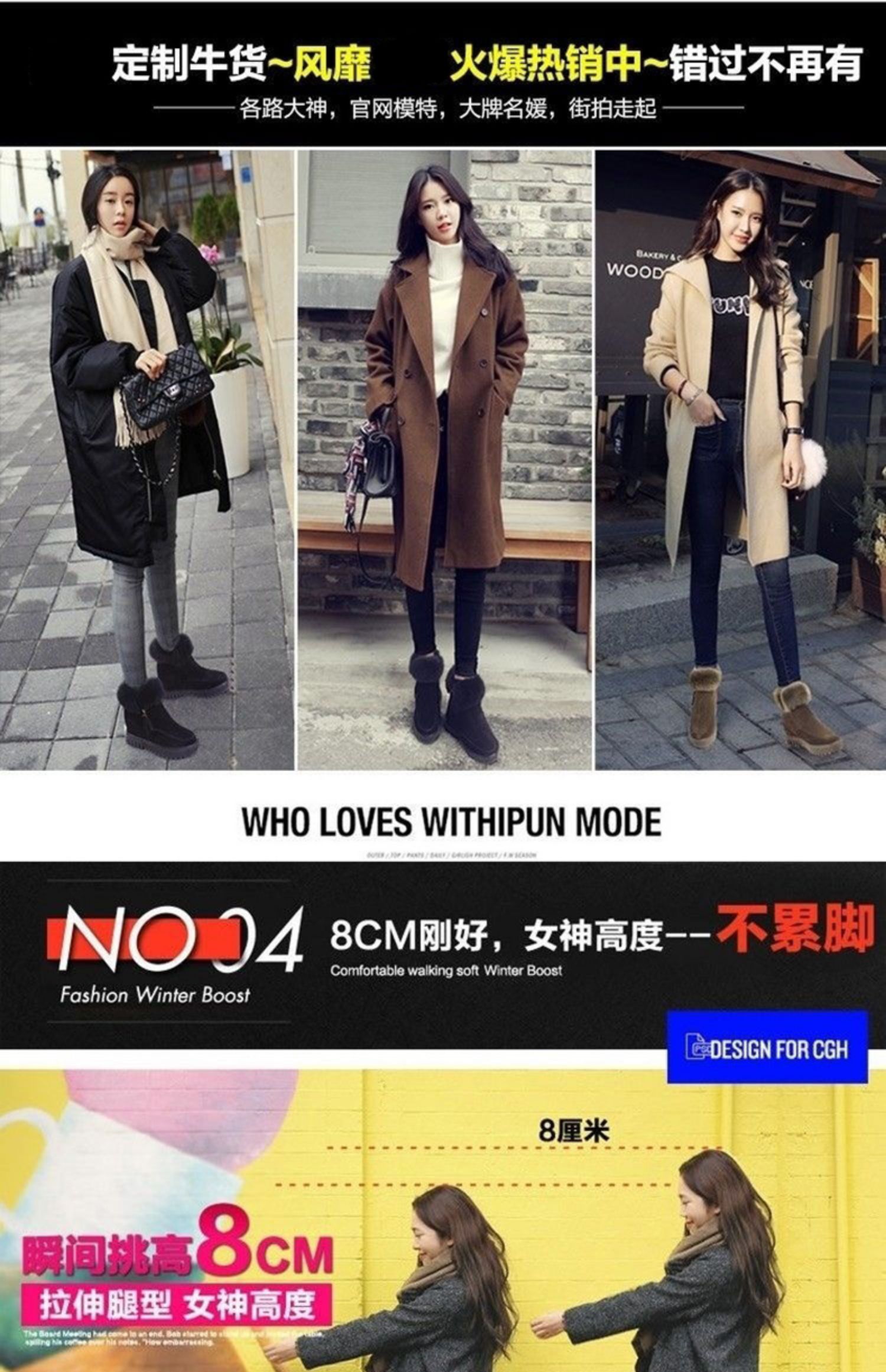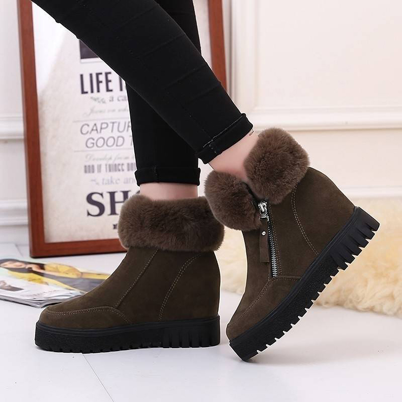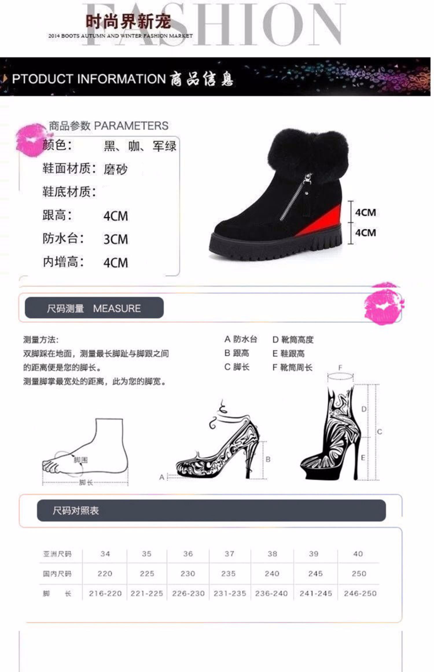 内增高雪地靴女短靴兔毛加绒靴保暖棉鞋