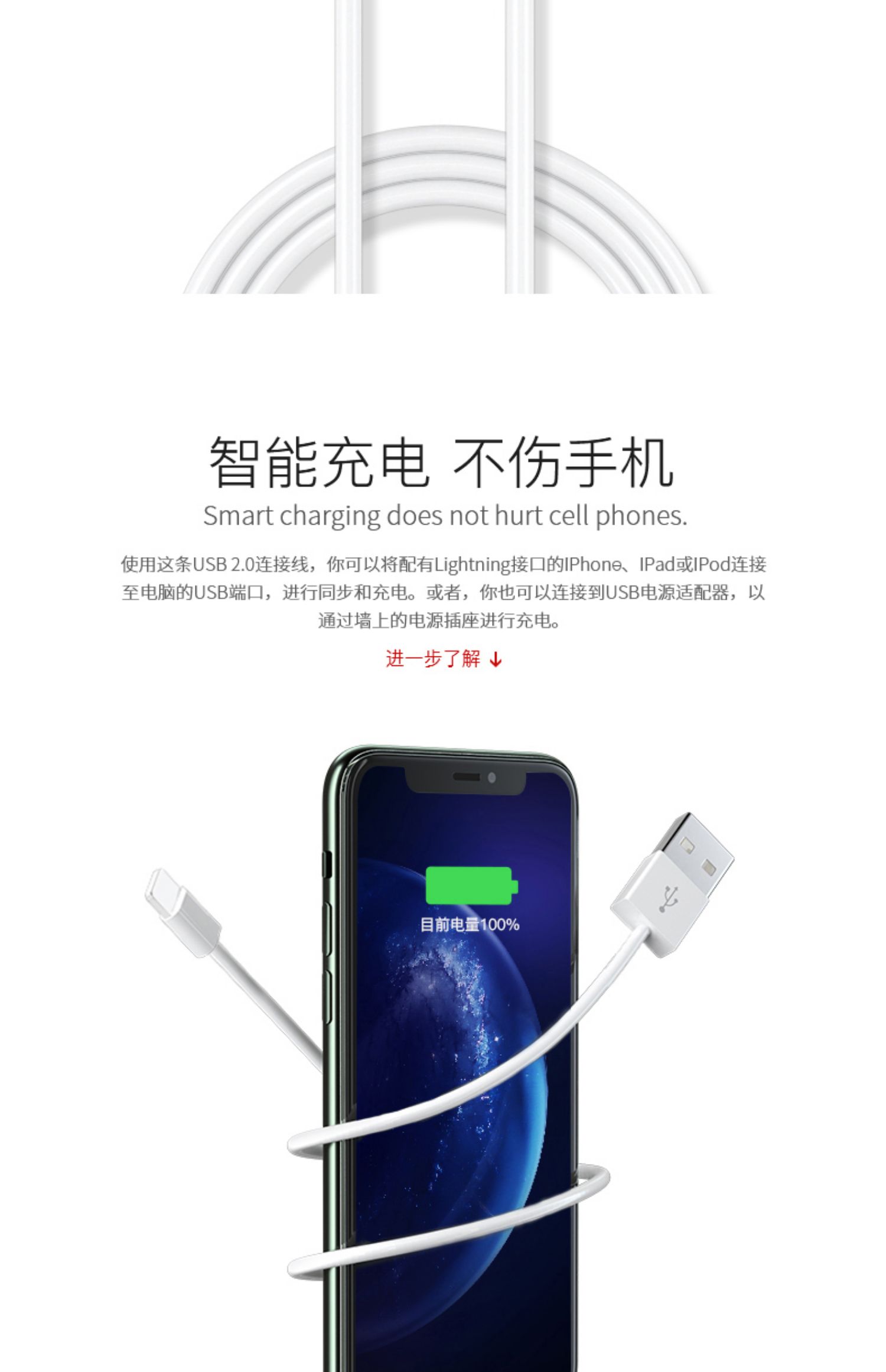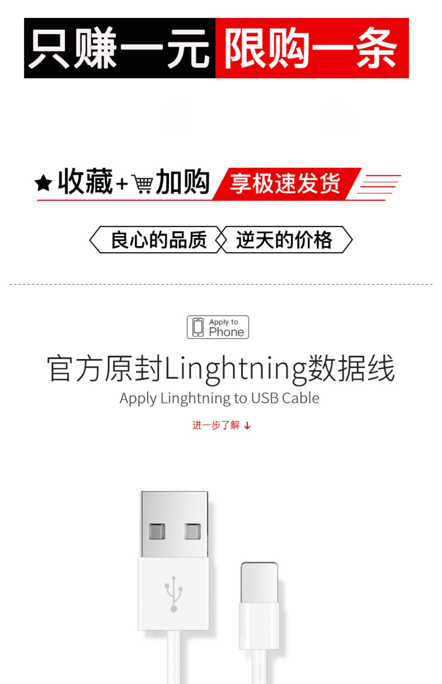 【原装正品iPhone数据线】不分正反,传输二合一,安全不伤机,标准出厂测试,防止爆线更耐用,抗拉耐扯,安全超高保障!快速充电,让等待不再漫长,充电更省时。抢到就是赚到!