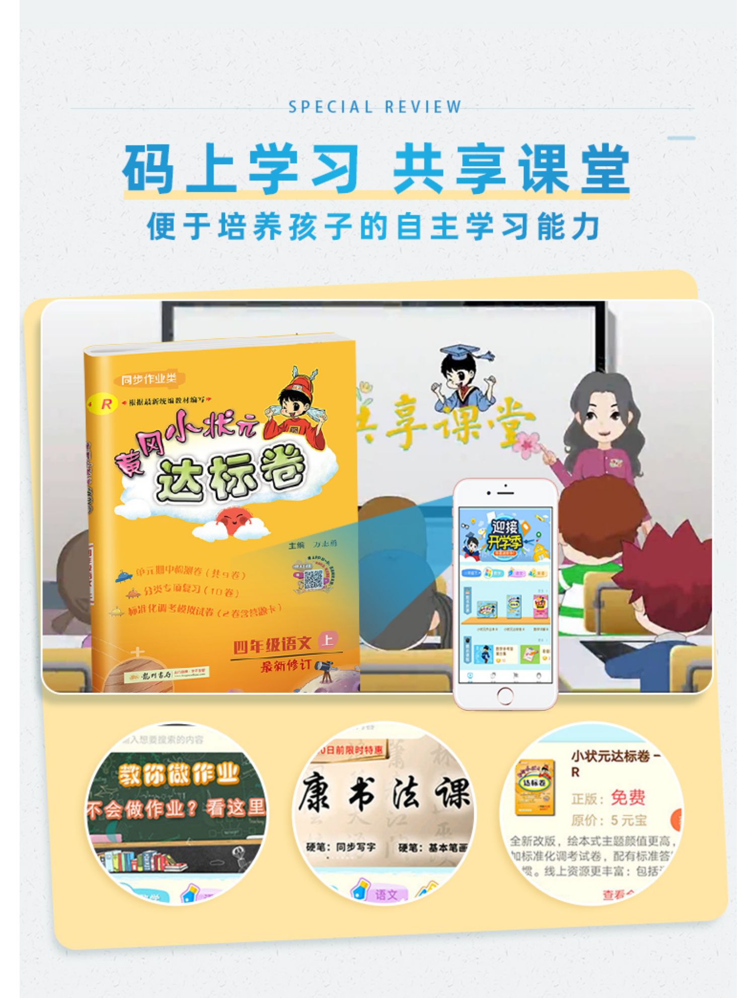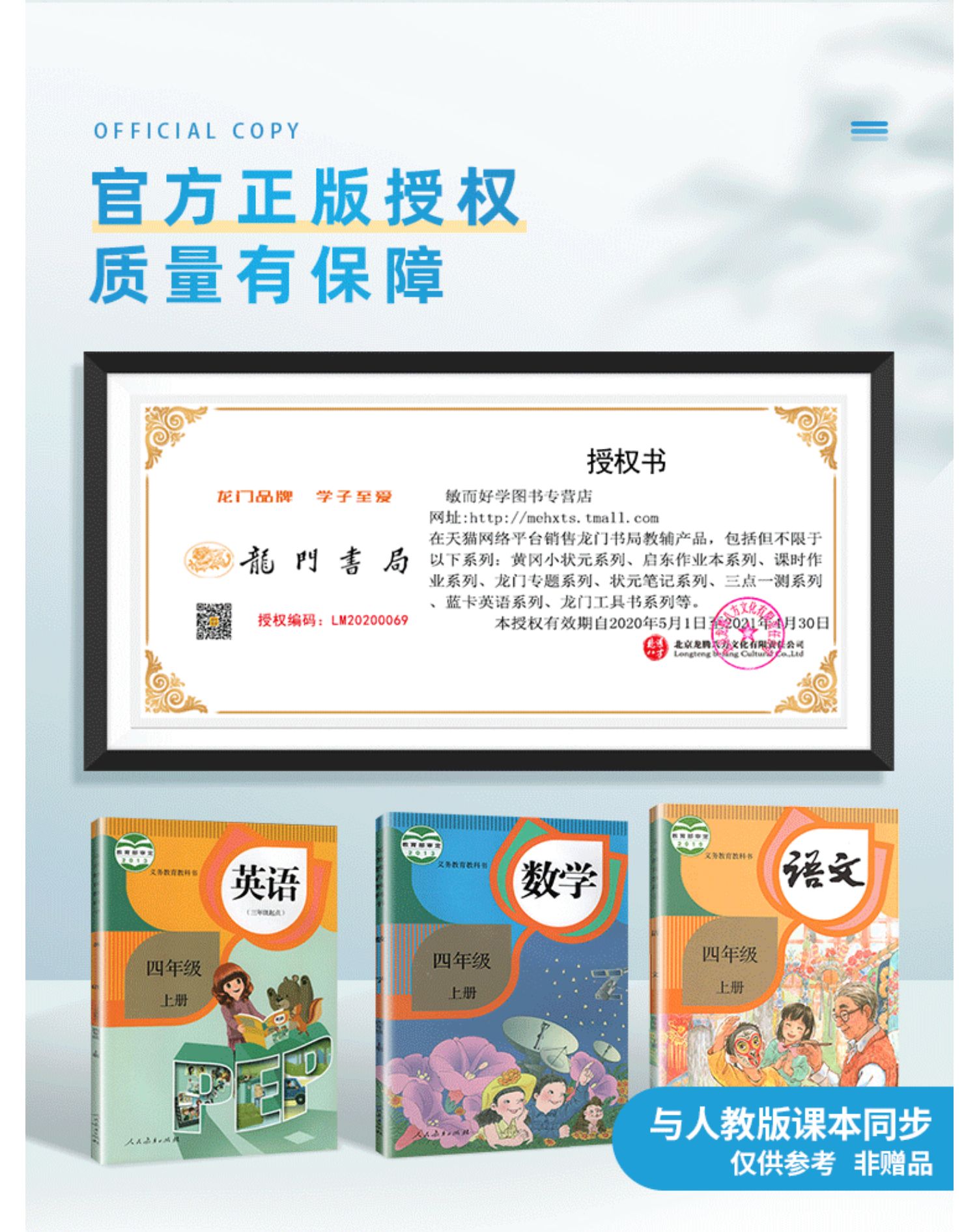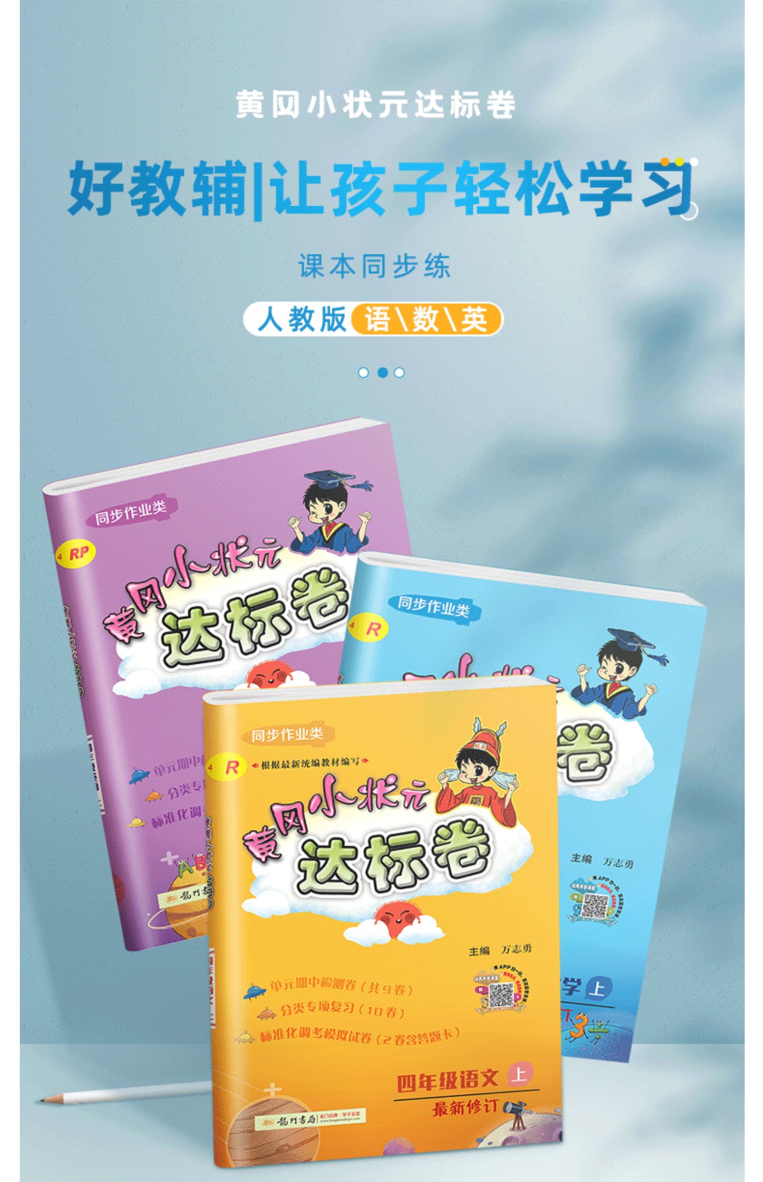 老师推荐,黄冈小状元四年级上册语文数学英语全套同步思维训练测试卷,赠书签三张,笔记本三本,扫一扫,老师教你做作业,快速提高学生成绩,家长放心!