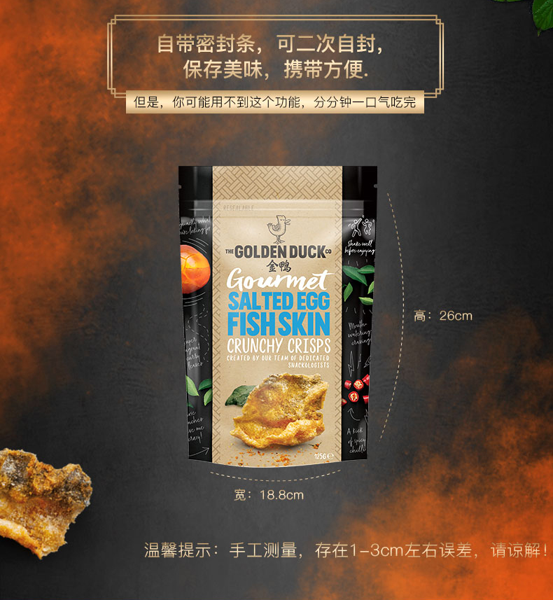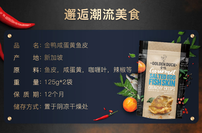【进口保税】网红疯狂安利的咸蛋黄鱼皮,新加坡特产~新鲜鱼皮搭配辣椒,咖喱叶和咸蛋黄的独特口味,一口咬下,酥香绵密,清辣爽口~每一口都妙不可言!【15天售后无忧】