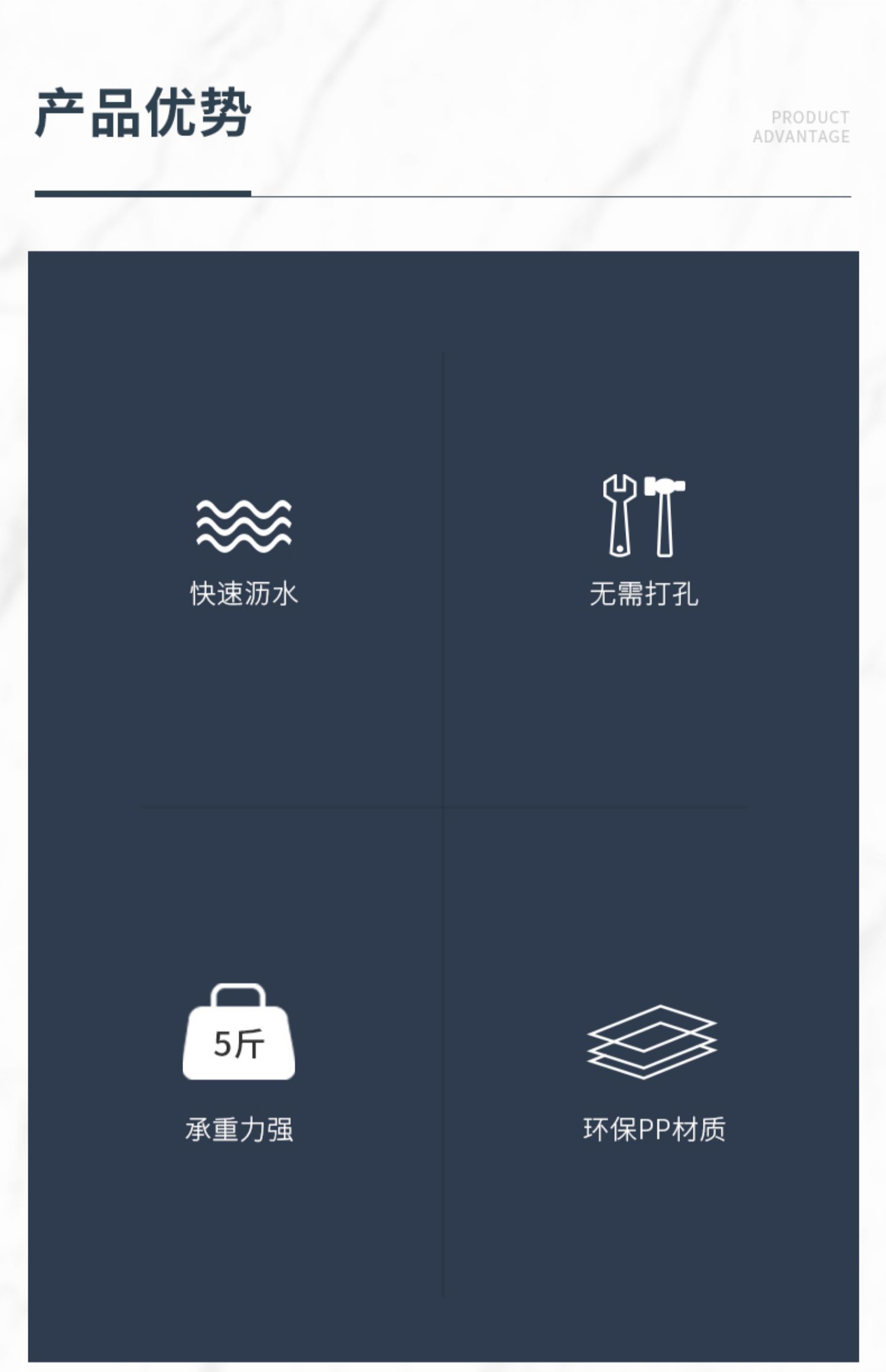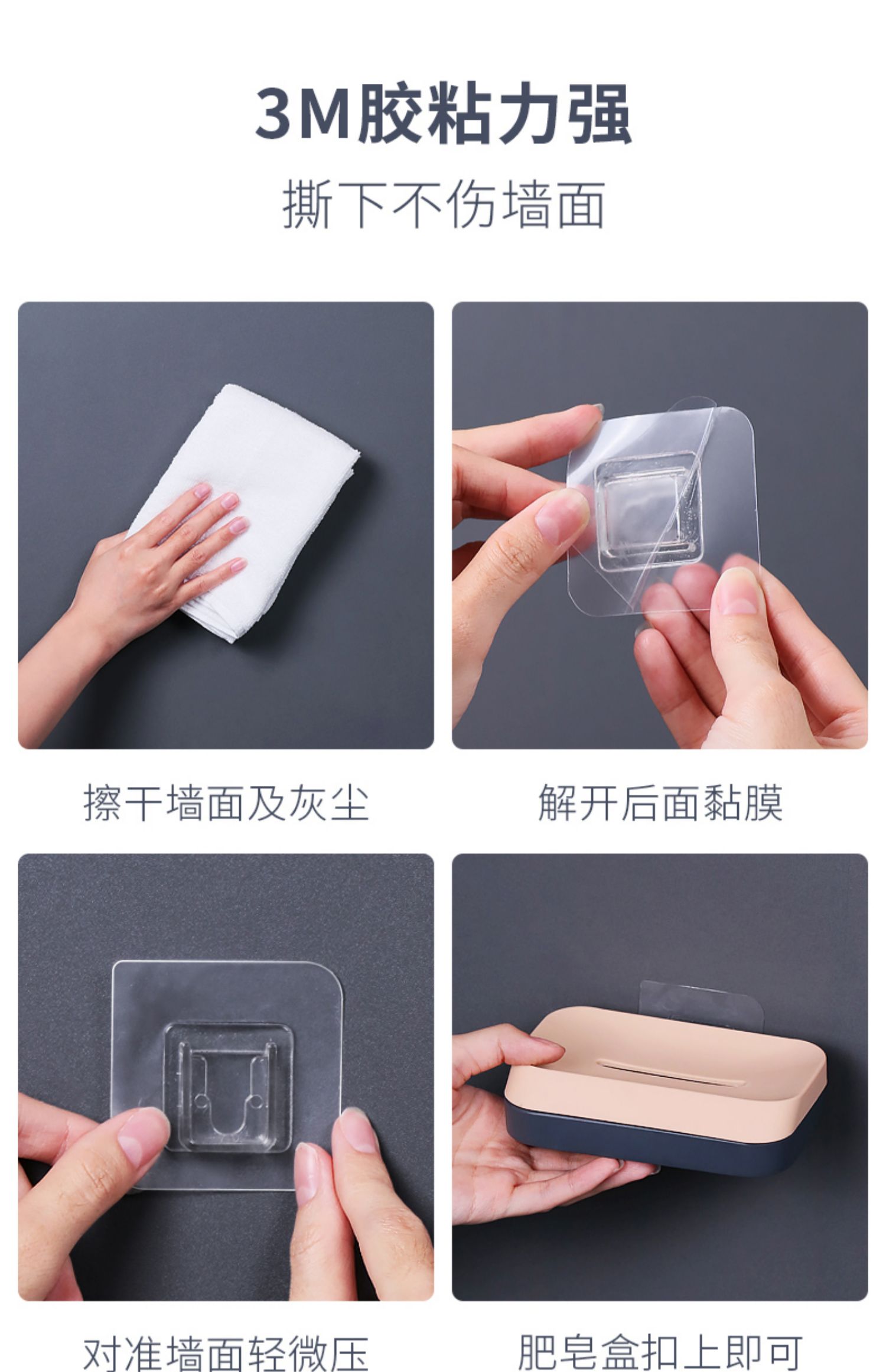 防水防潮,免打孔,强力粘胶,不伤墙面,安装便捷,通风沥水,肥皂干爽耐用~