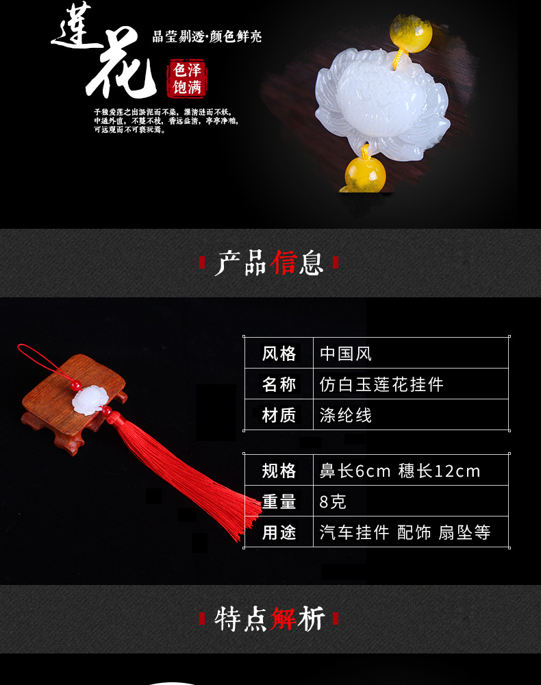 】复古风仿白玉莲花挂饰挂件时尚百搭,复古中国风,经典时尚,高质量防摩不掉色,潮男潮女必备,您值得拥有!带上它你就是这条Gai亮的仔!
