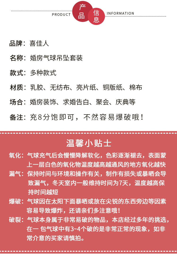 【秒杀价】浪漫婚房装饰,这是一次喜字与气球的完美融合,打破传统的装饰思路,重新定义婚房装饰。气球双层乳胶色泽鲜艳不易爆破,价格实惠,性价比贼高,超多款式供选【七天无理由退换】