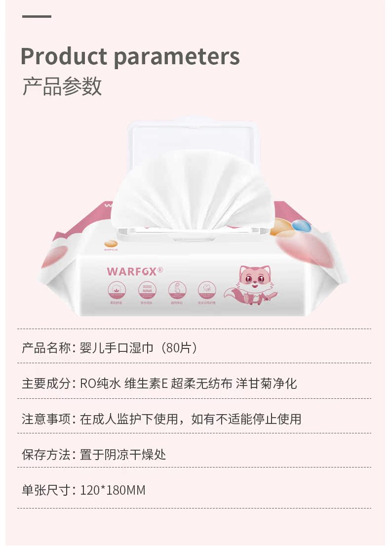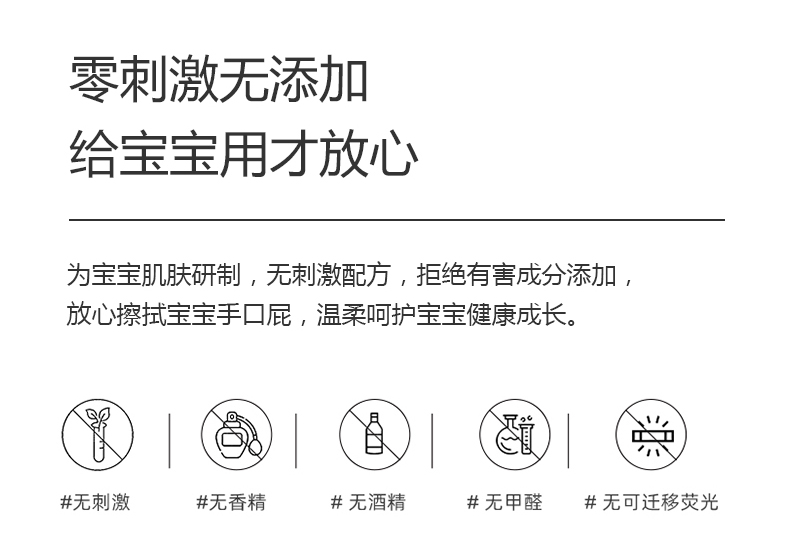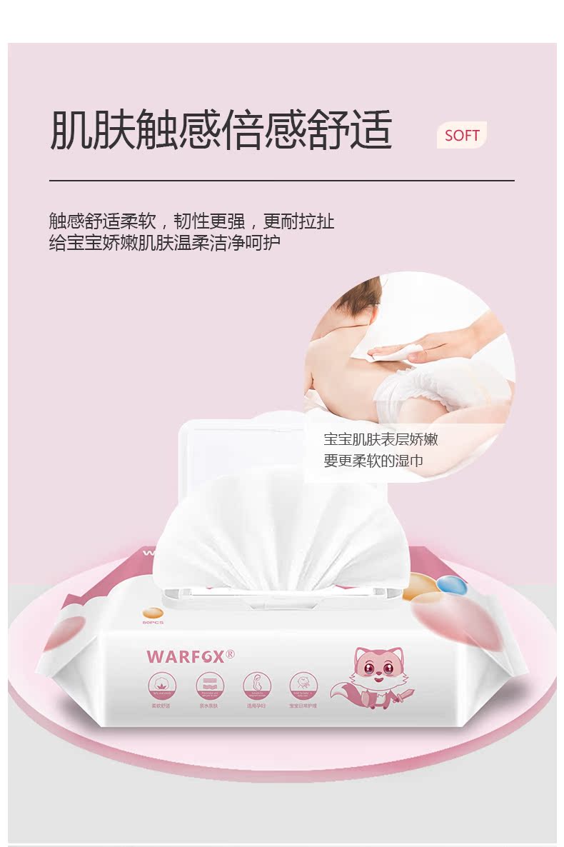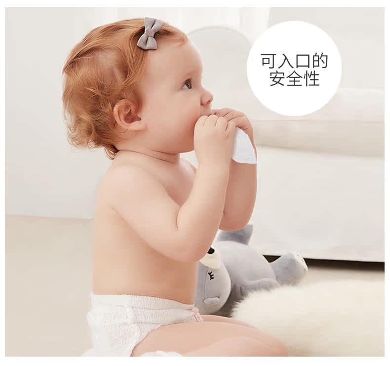 婴儿卫生润肤柔湿巾,洁净小卫士,优选水刺无纺布,触感亲柔。采用RO纯水,无荧光无香精无甲醛,多角度保护家人健康。袋装带盖水分不流失。