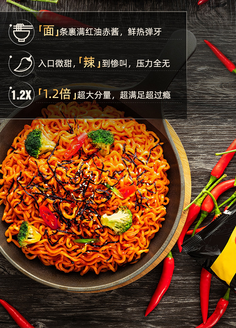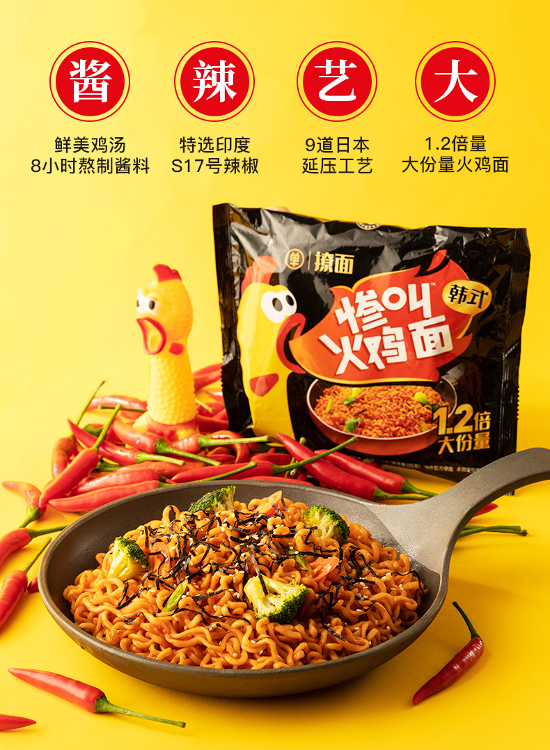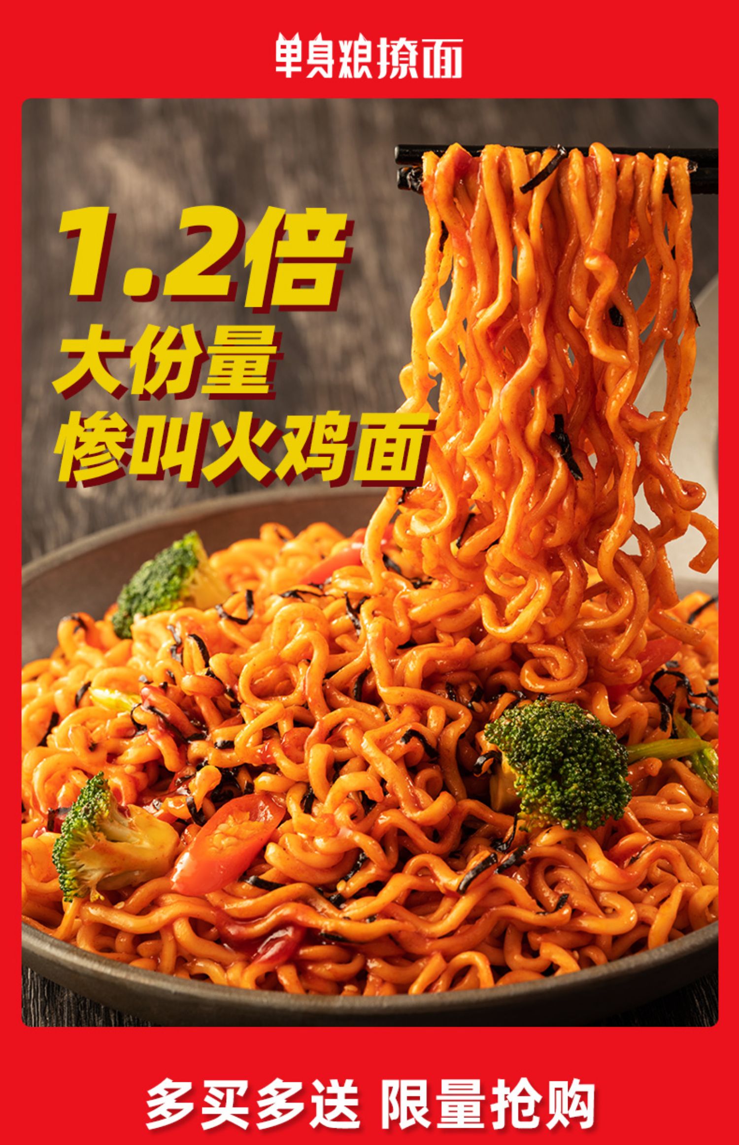 【第二件半价!拍两件单件仅需13.6!】明星直播5分钟爆卖160000包!单身粮惨叫火鸡面来了!火辣登场选用鸡汤熬制辣椒包,甜而后辣不烧胃完美爆爽,不呛喉,一袋份量超大,吃着太过瘾了,1.2倍超大份