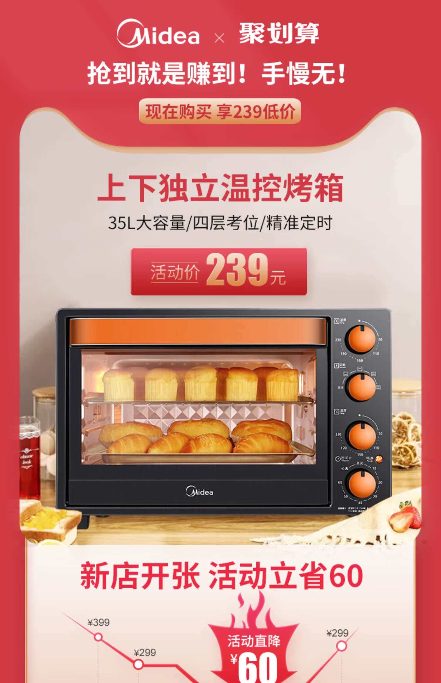 美的35L超大容量智能电烤箱,4层烤位,上下管独立控温,12大智能菜单,一键烘焙!优质不锈钢外壳,防爆钢化玻璃门,3D热风循环,家用烘焙必备【赠运费险】【七天无理由退换】