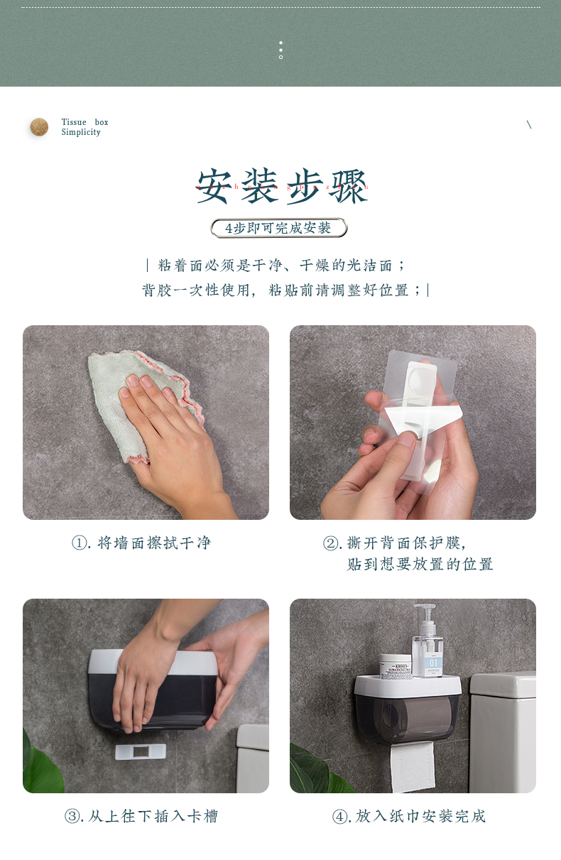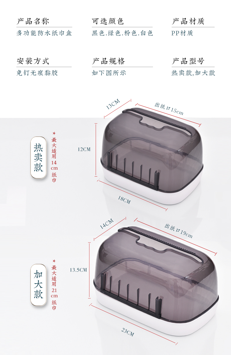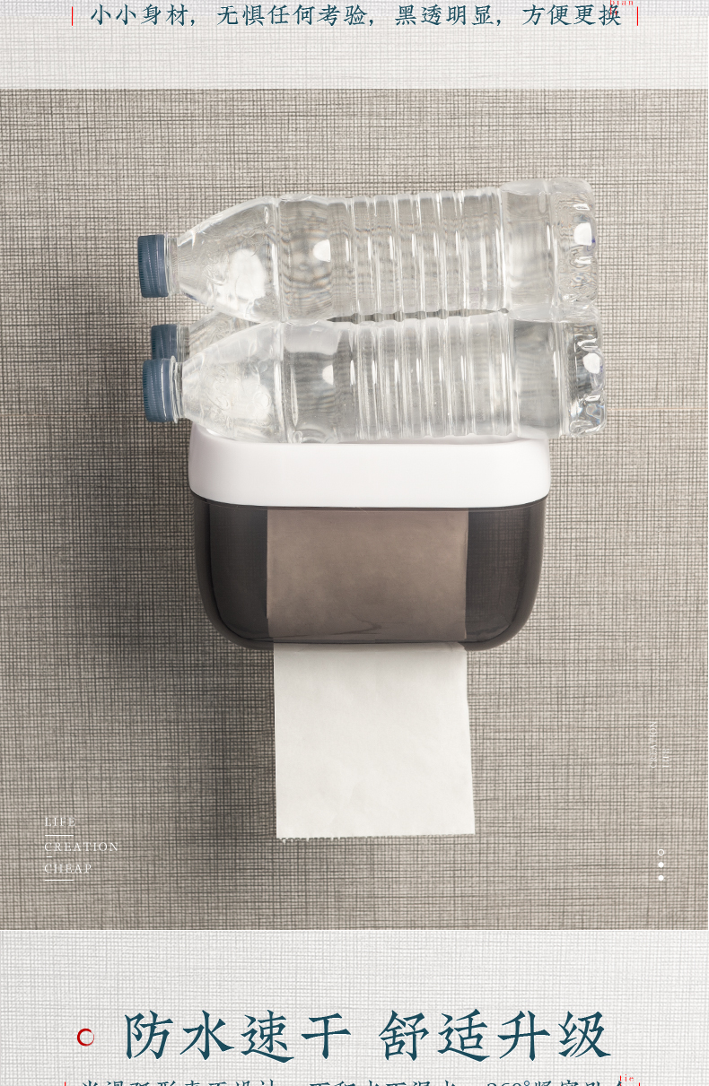 居家必备,超大容量,360度防水,抽纸卷纸通用,免打孔安装,无痕不伤墙,手机置放格,上厕所玩手机有地放,一架多用。