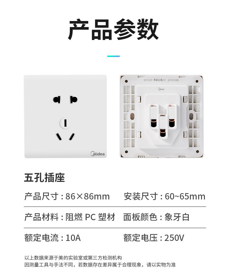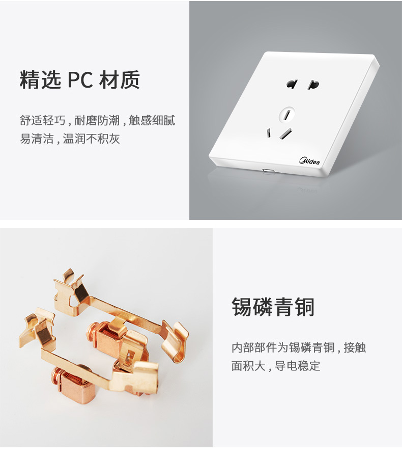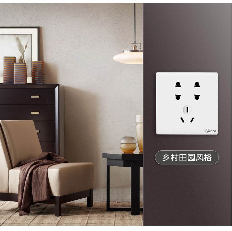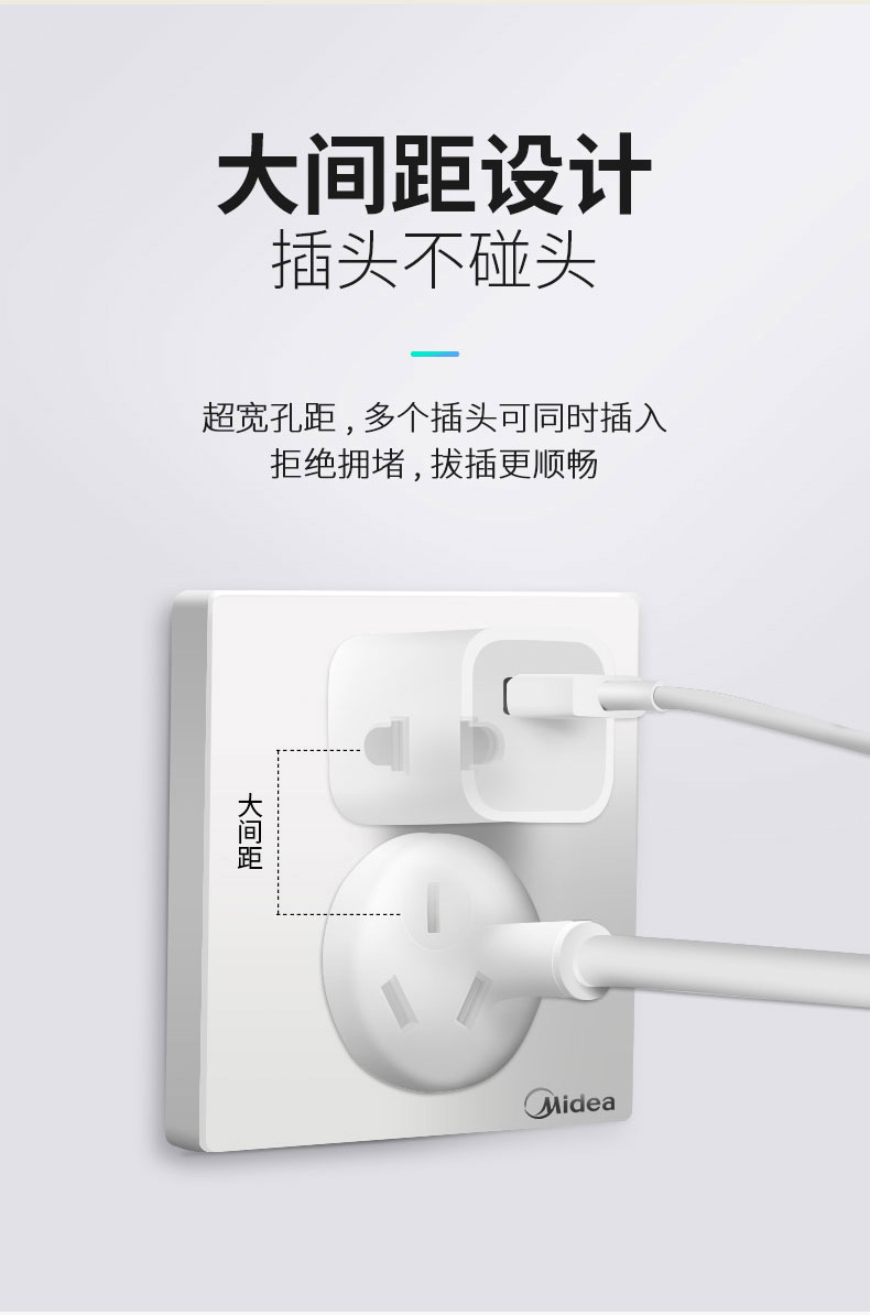 美的5孔家装插座,品牌过硬!质量超好!采用难燃PVC塑料用电更安全,不生锈不松脱,54mm高度,大空间能容纳更多电线!
