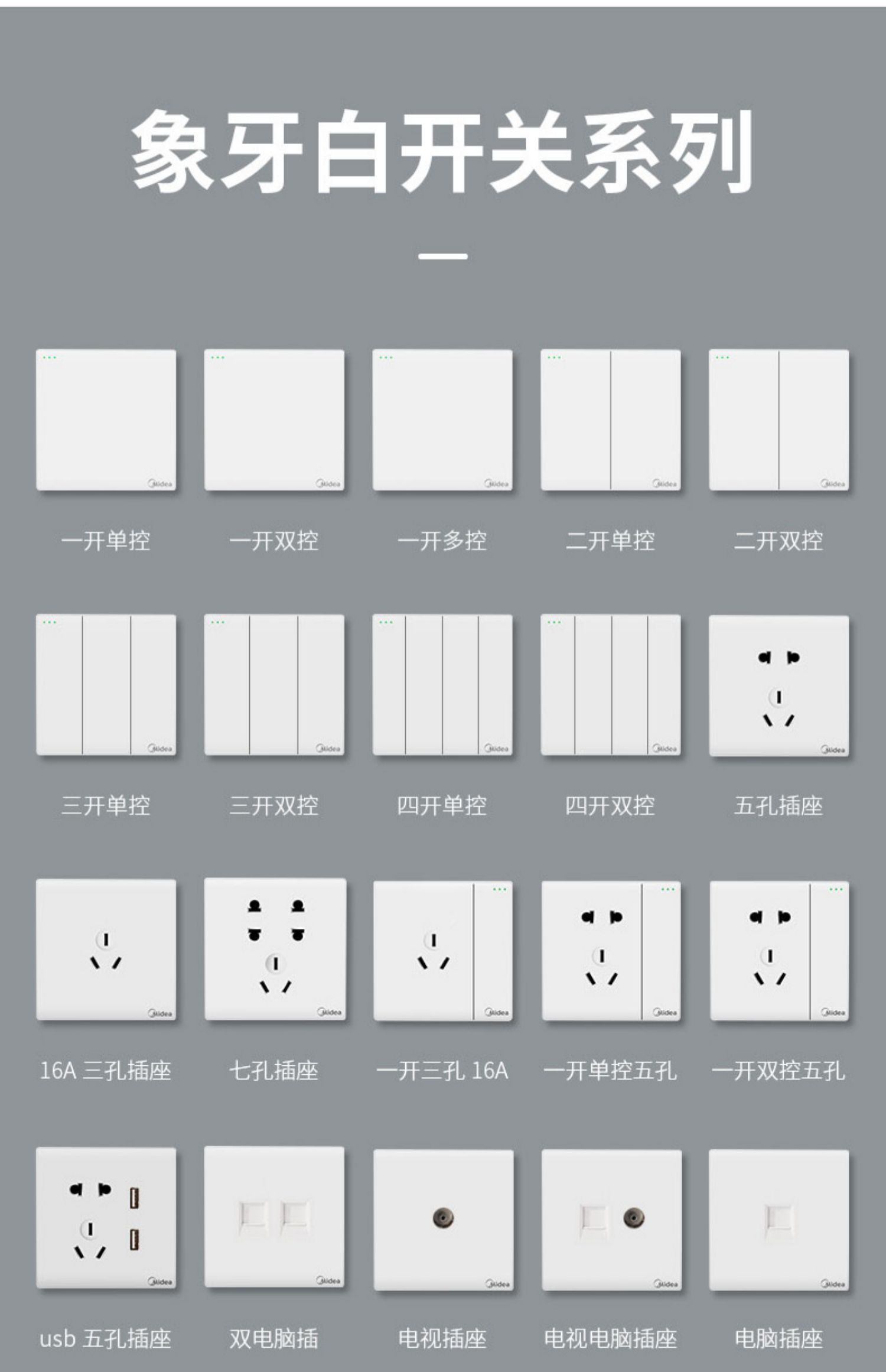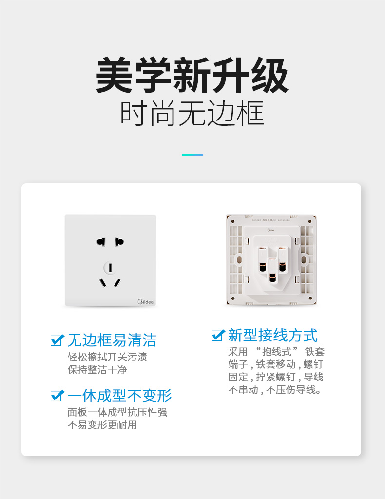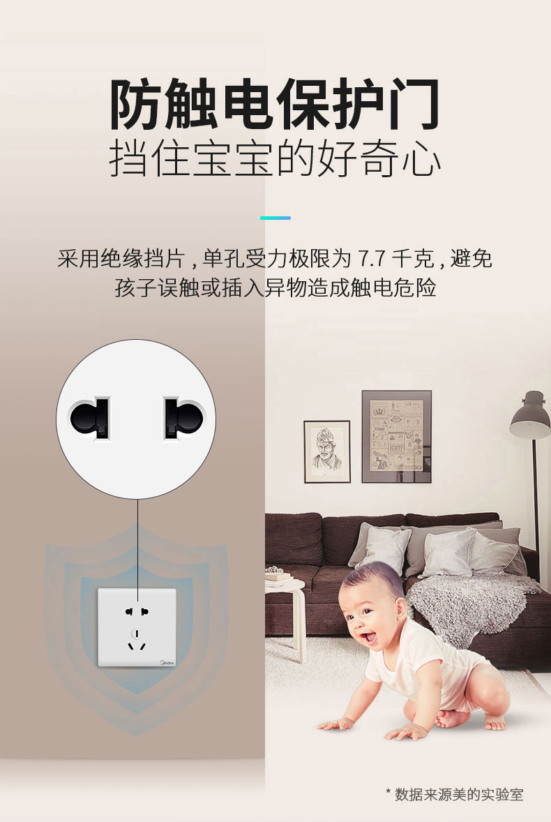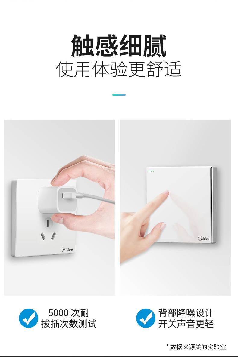美的5孔家装插座,品牌过硬!质量超好!采用难燃PVC塑料用电更安全,不生锈不松脱,54mm高度,大空间能容纳更多电线!