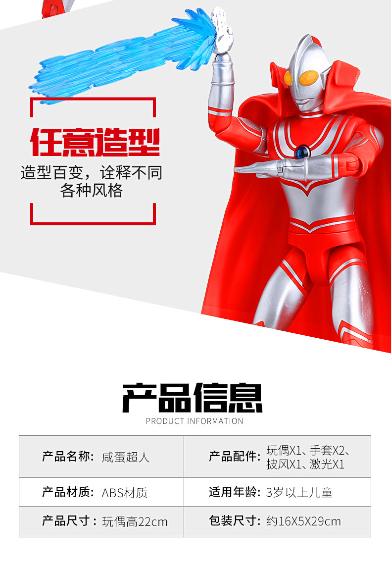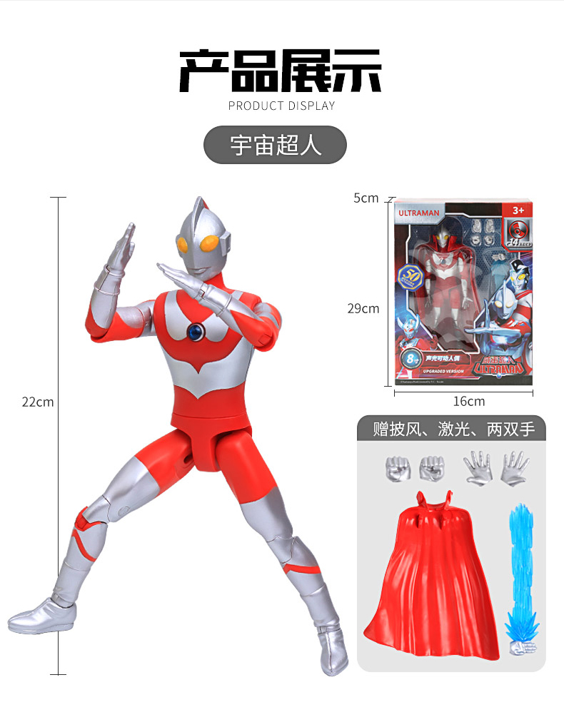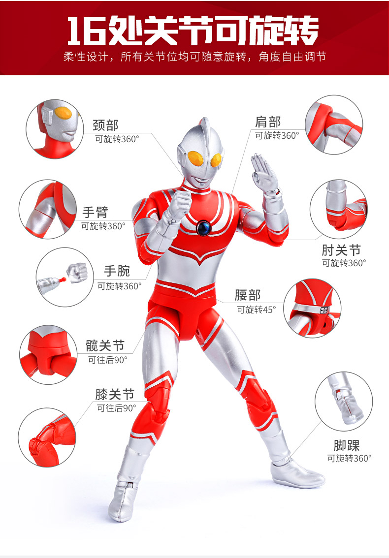 奥特曼正版授权,配送披风,16关节可动,耐玩耐摔,逼真音效模拟,让孩子身临其境,锻炼孩子的想象力与创造力,送礼推荐【赠运费险】