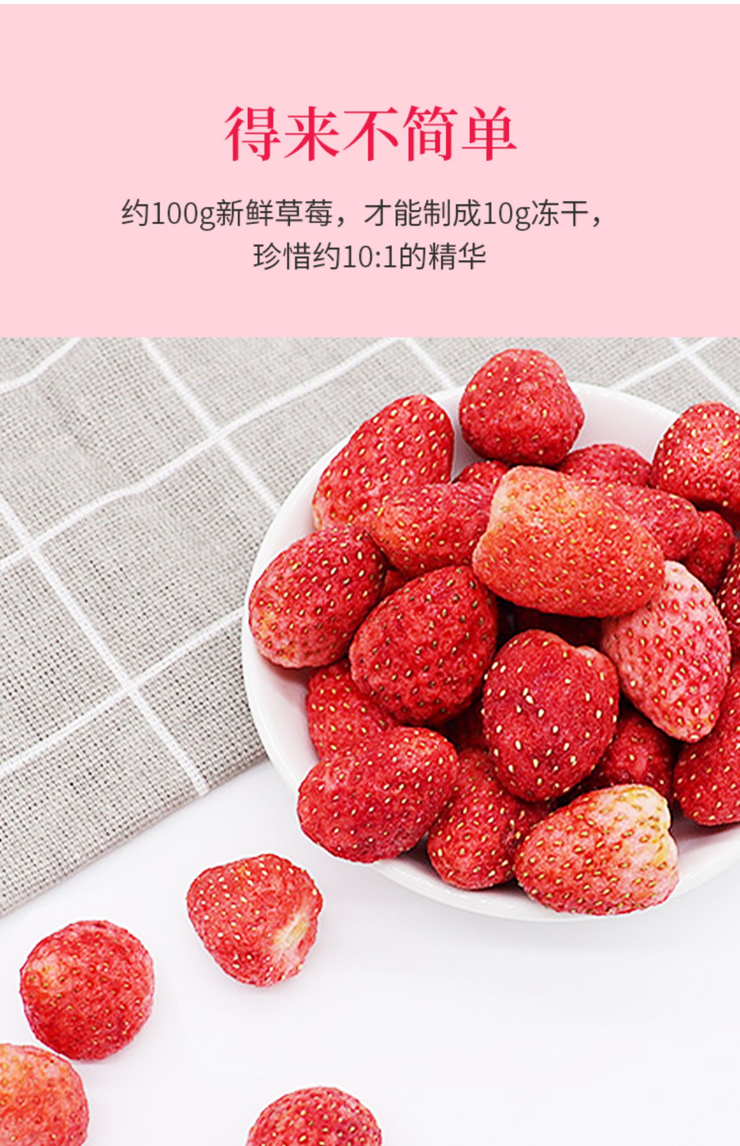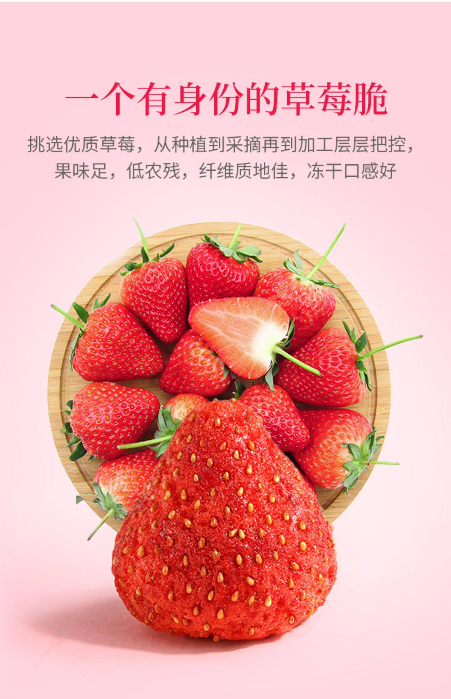 【我的小心情】冻干草莓干,保留了草莓原始的口感,味道微酸航天冻干工艺,锁住营养好味,没添加剂没防腐剂,原味留存营养美味,天然健康,孕妇儿童都放心吃!!